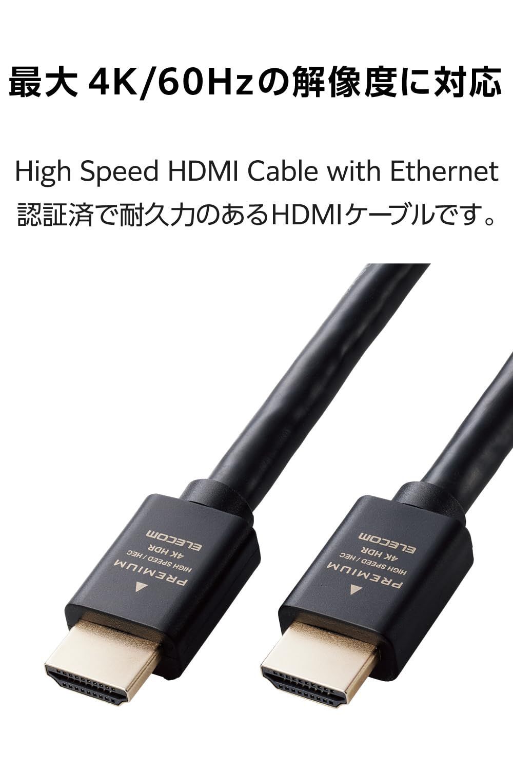 エレコム HDMI ケーブル 5m プレミアム 4K2K(60Hz) 【Premium HDMI(R) Cable規格認証済み】 18Gbps テレビ・パソコン・ゲーム機などに ARC 黒 ECDH-HDP50BK