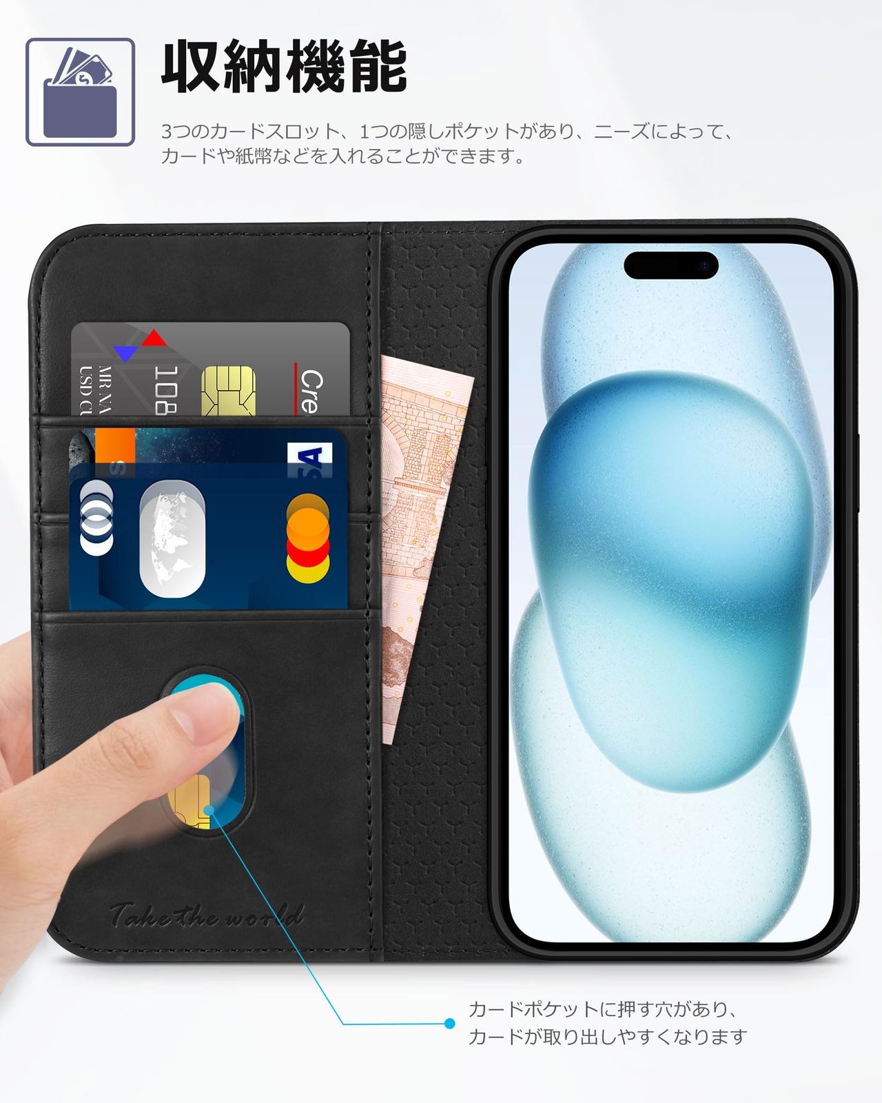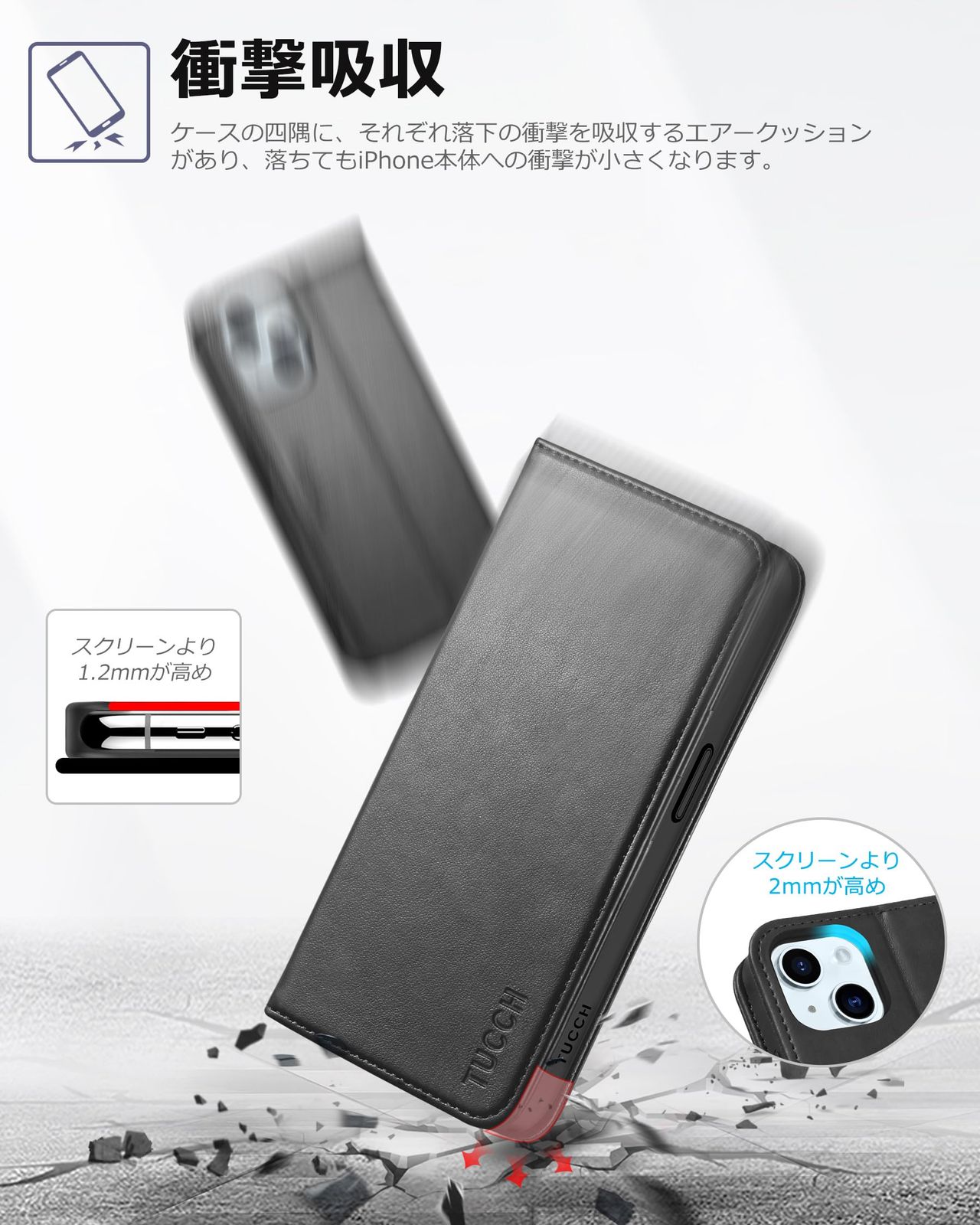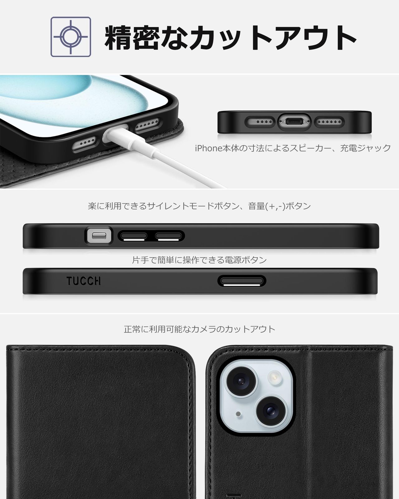 TUCCH iPhone15 対応 ケース 手帳型 アイフォーン 15 ケース手帳型 耐衝撃 カード収納 横置きスタンド機能付き 高級PU合皮 全面保護 [RFIDブロッキング] あいほん15ケース 財布型 アイフォン15ケース (2023年発売 iPhone 15 6.1インチ 対応) ブラック