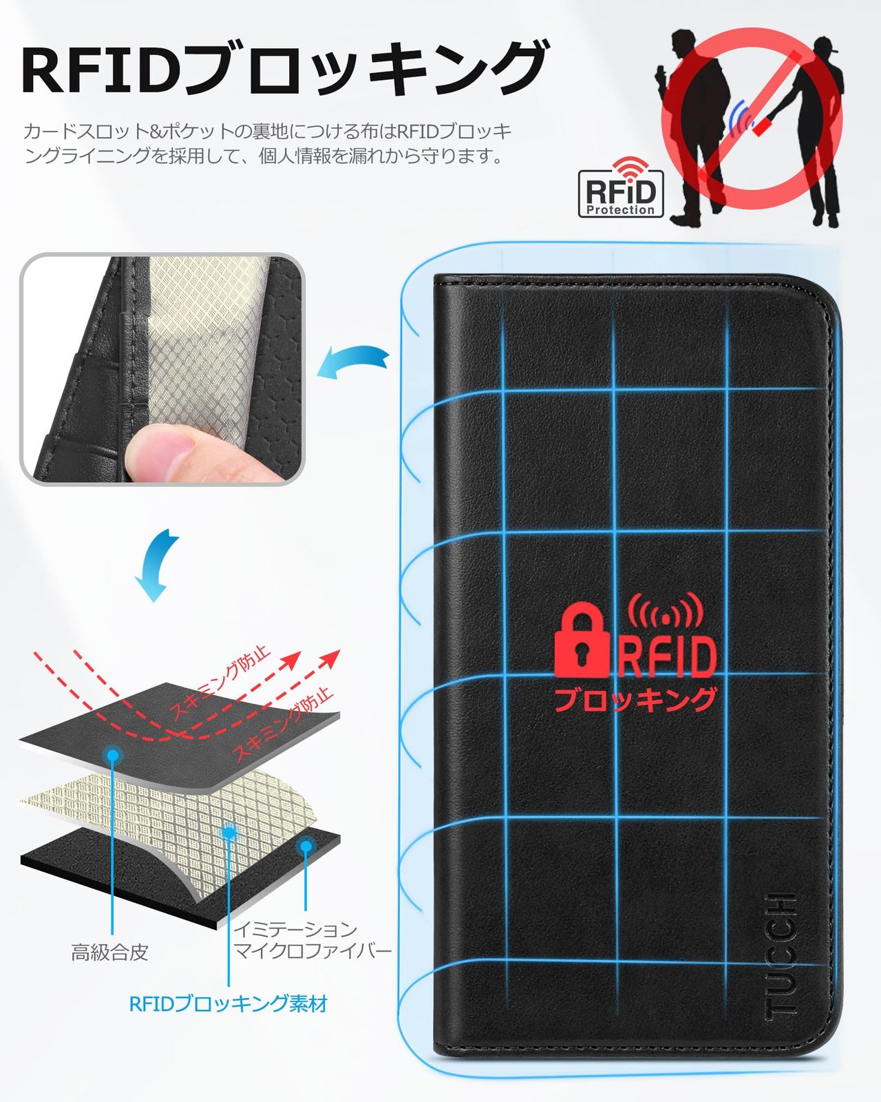 ★【RFIDブロッキング技術採用】この商品は、Radio Frequency Identification (RFID)ブロックテクノロジーを採用して、信号をブロックします。スイカなどを利用する場合は、取り出す必要がありますが、リモートスキャンによって、ICカードなどの個人情報を漏れから守ります。
