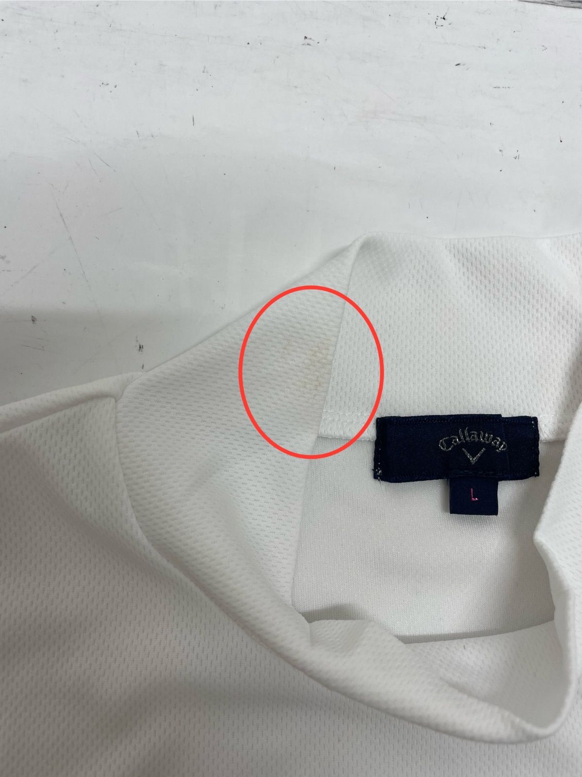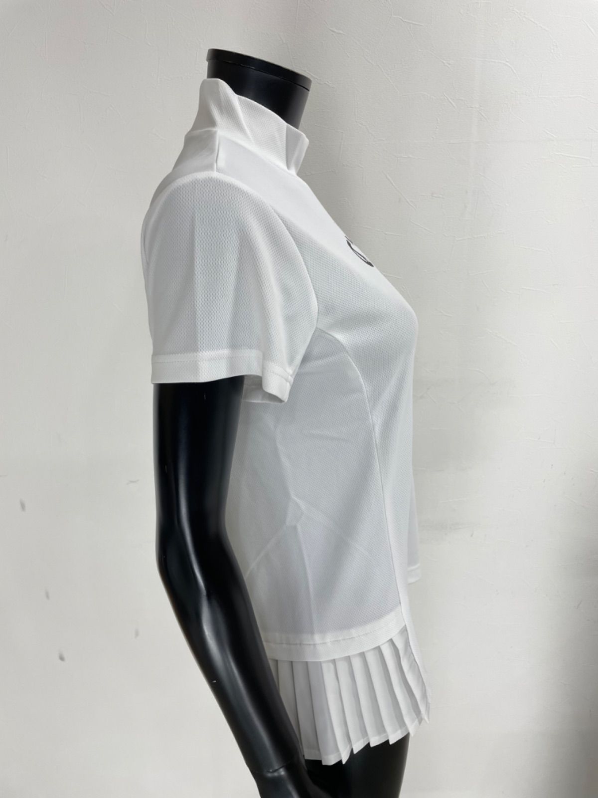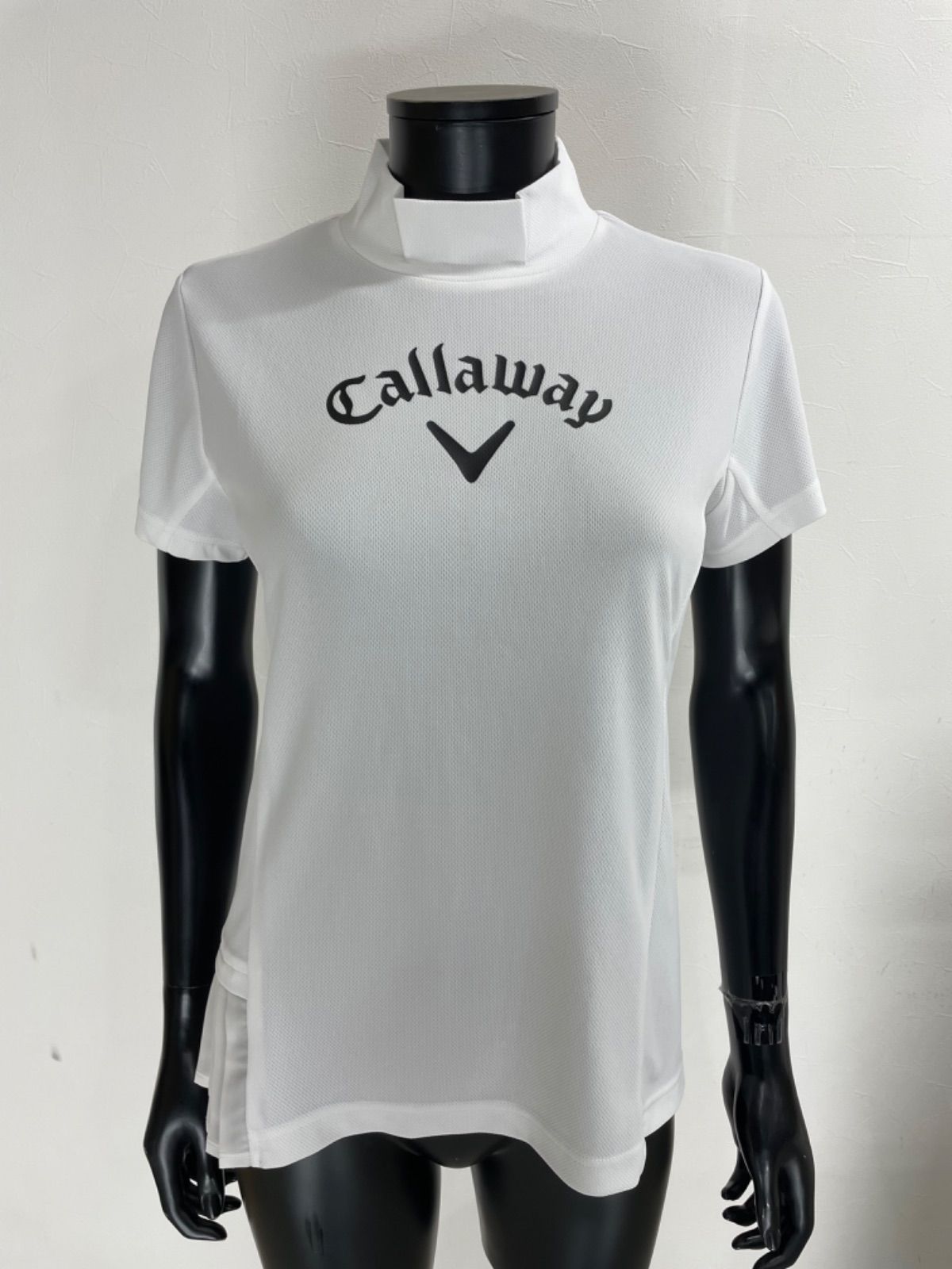 【USED】Callaway キャロウェイ ポリエステル モックネック 半袖 シャツ プリーツ アシンメトリー ホワイト 白 レディース L ゴルフウェア