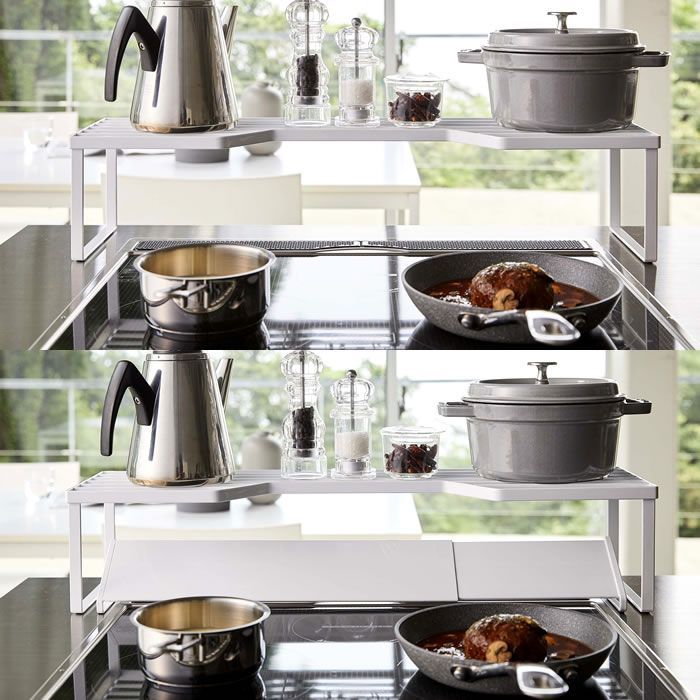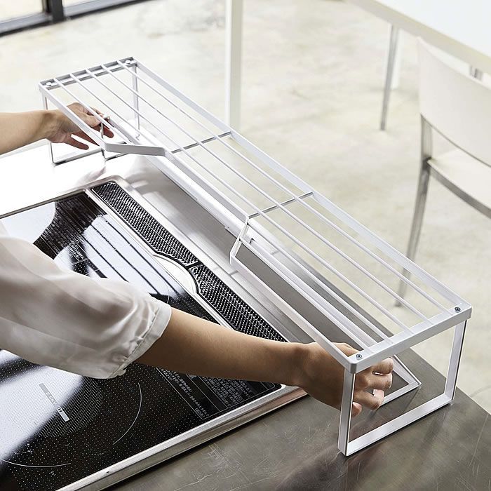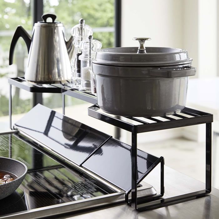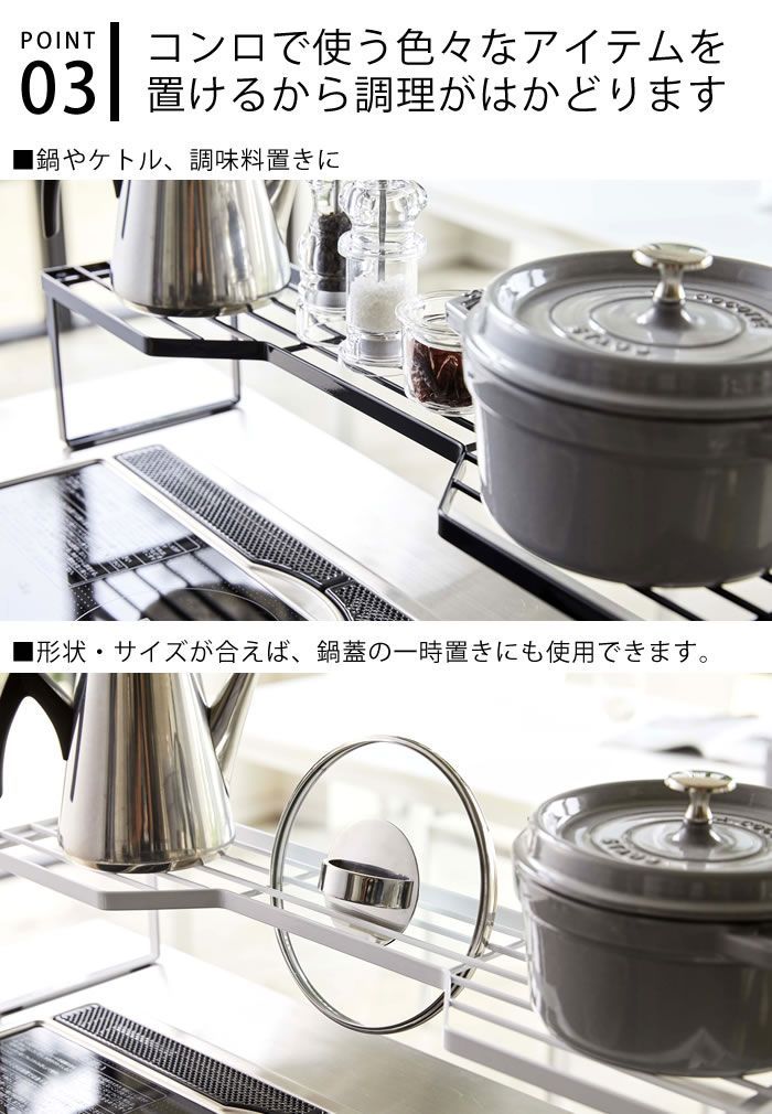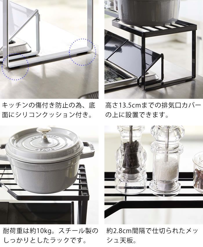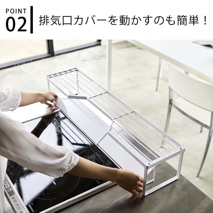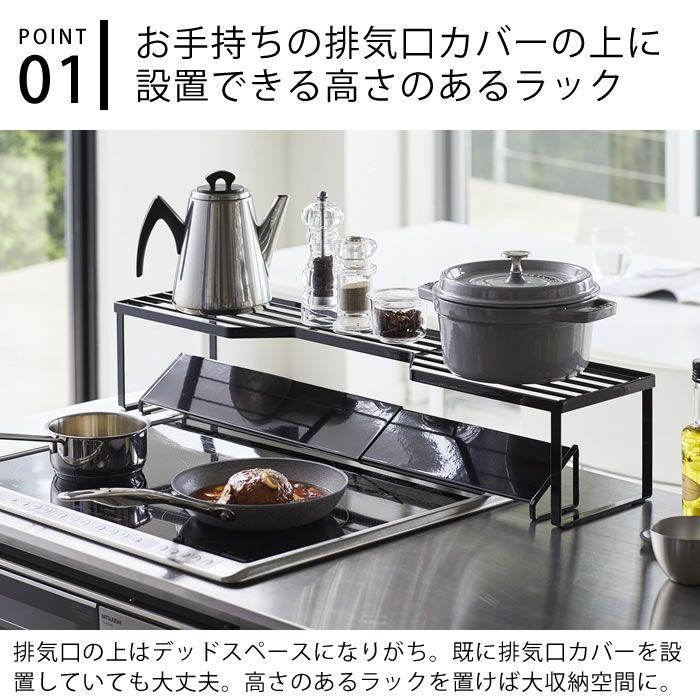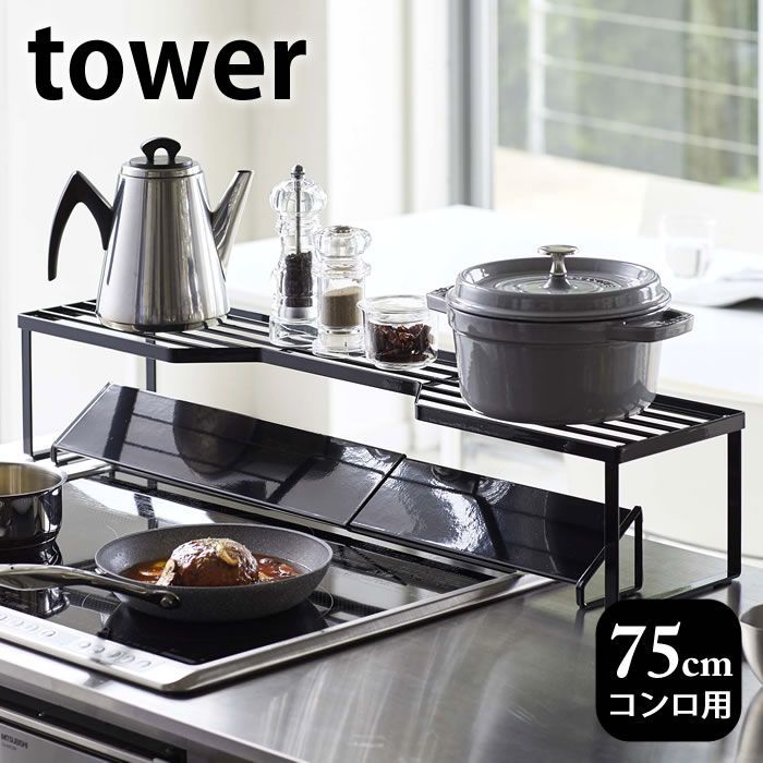 排気口カバー上コンロ奥ラック タワー 75cmコンロ用 tower 幅78cm以内のコンロ対応 キッチン収納 隙間収納 スパイスラック キッチンラック 鍋置き 鍋蓋置き シンプル スタイリッシュ 白 黒 5266 5267 山崎実業 yamazaki ヤマジツ
