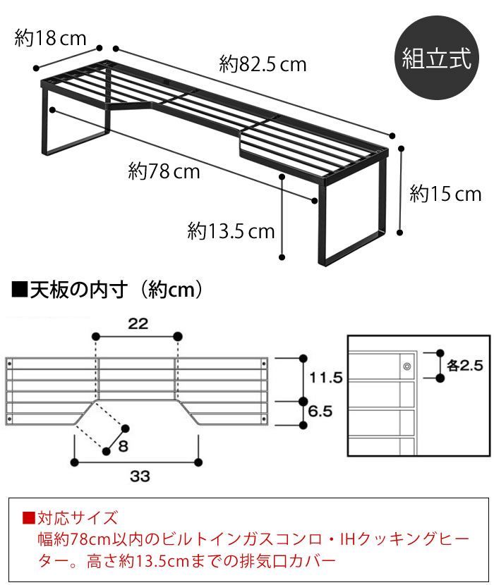 全体外寸:約 W82.5×D18×H15cm