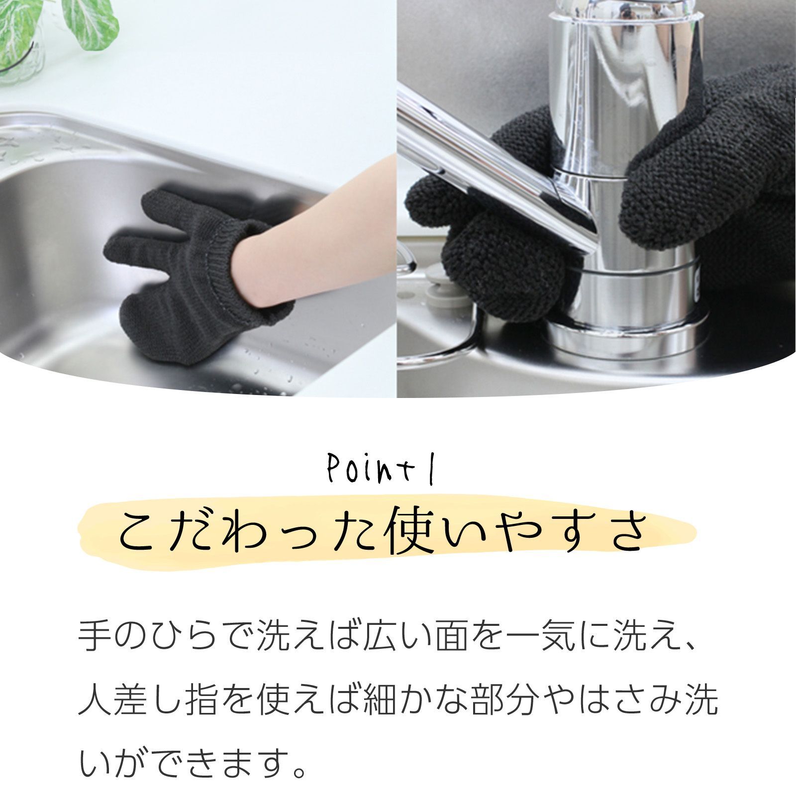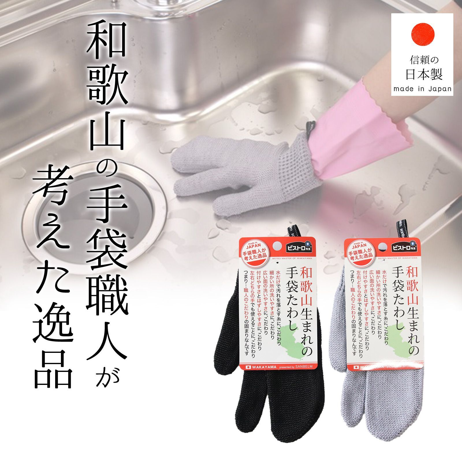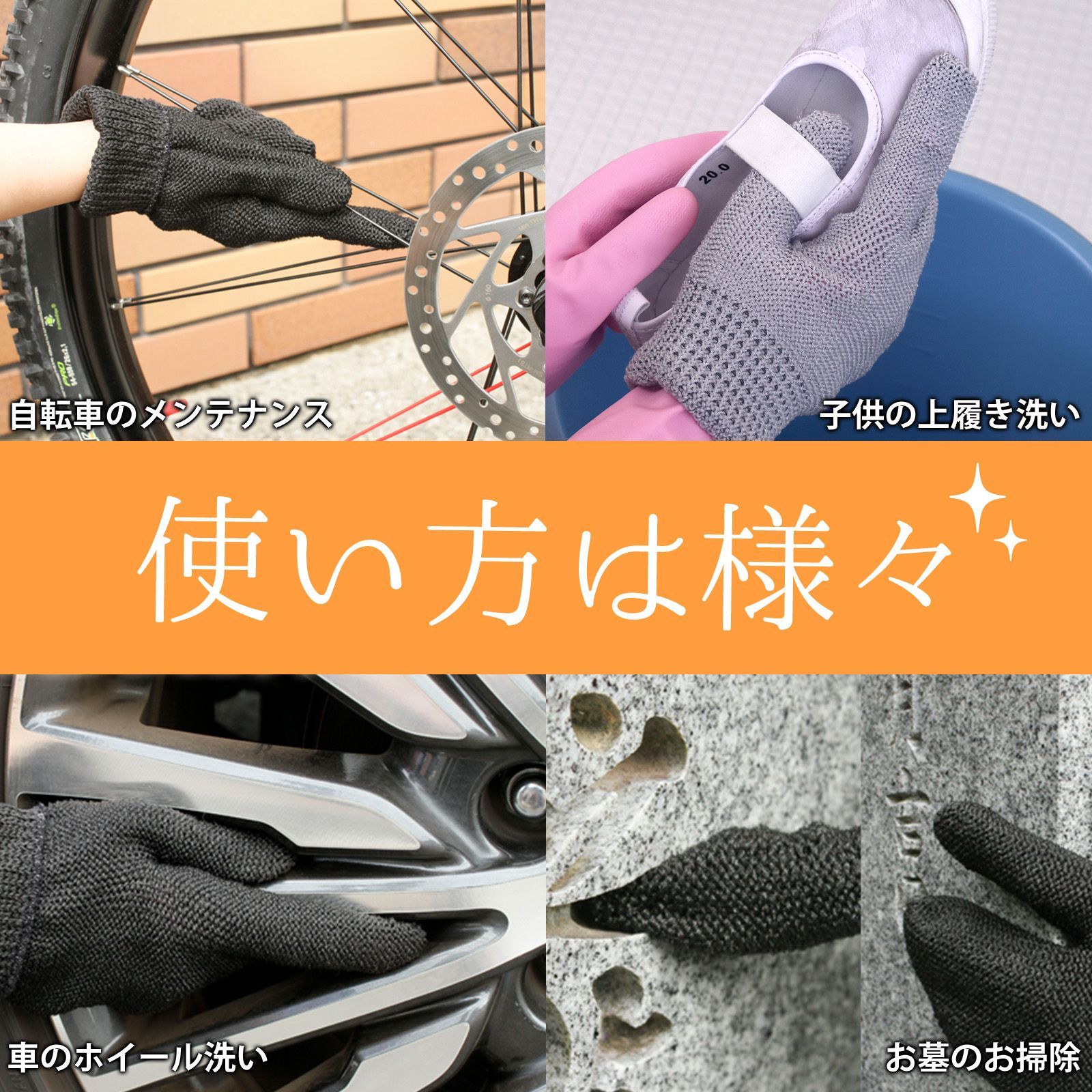 和歌山の手袋職人が考えた、水だけで汚れを落とせる手袋型たわしです。