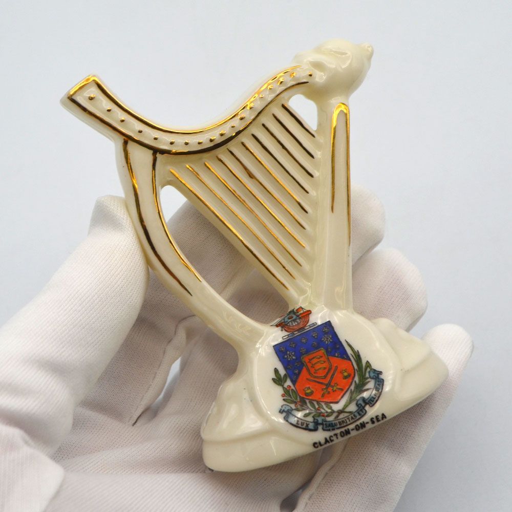 流行にともない観光地ではお土産用のご当地陶器が作られ、地域の紋章や名称が入った陶磁器たちはクレステッドチャイナと呼ばれて親しまれていました。