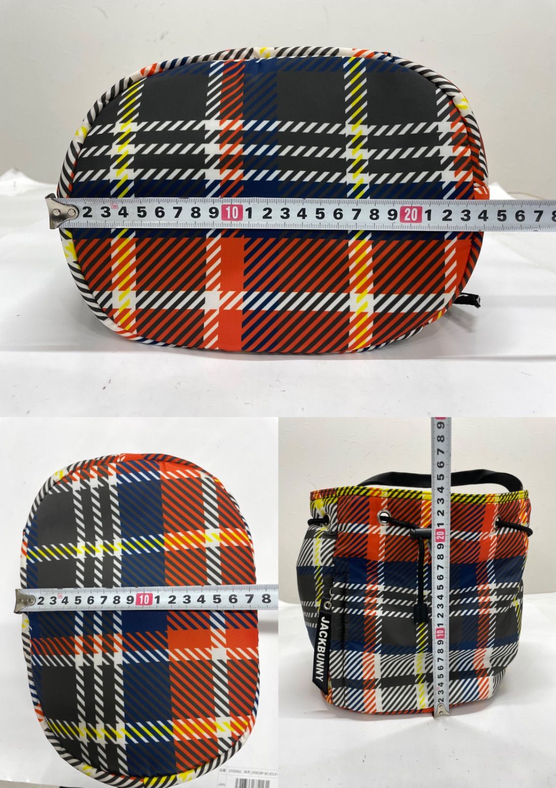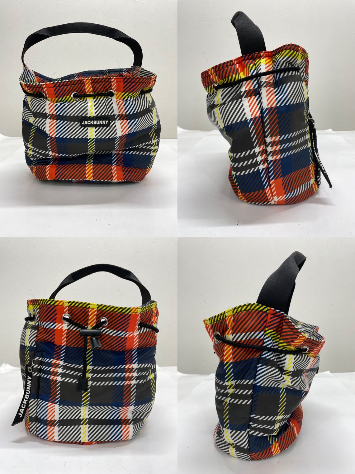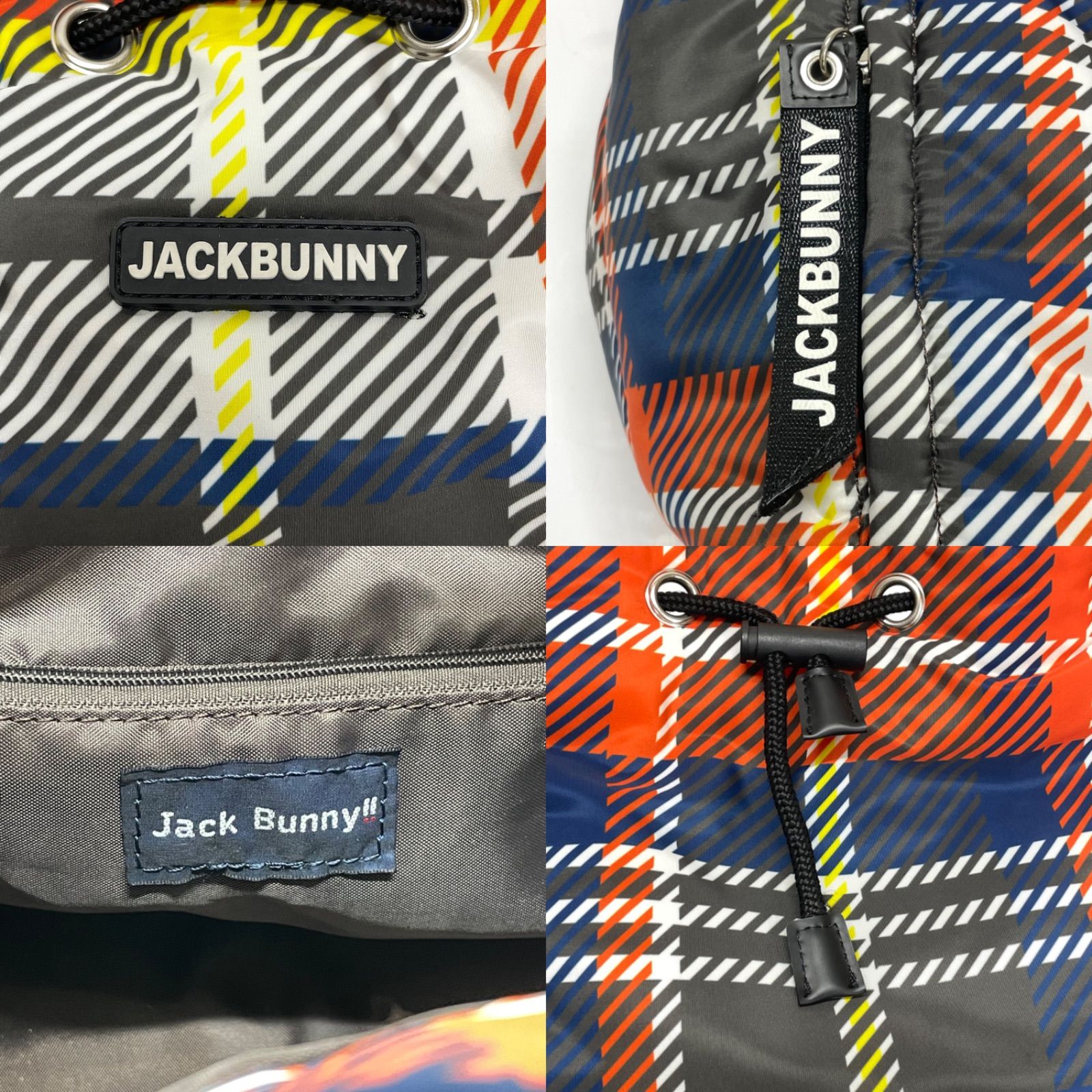【USED】Jack Bunny ジャックバニー カートバッグ チェック柄 オレンジ ブルー 青 ホワイト 白 ゴルフ