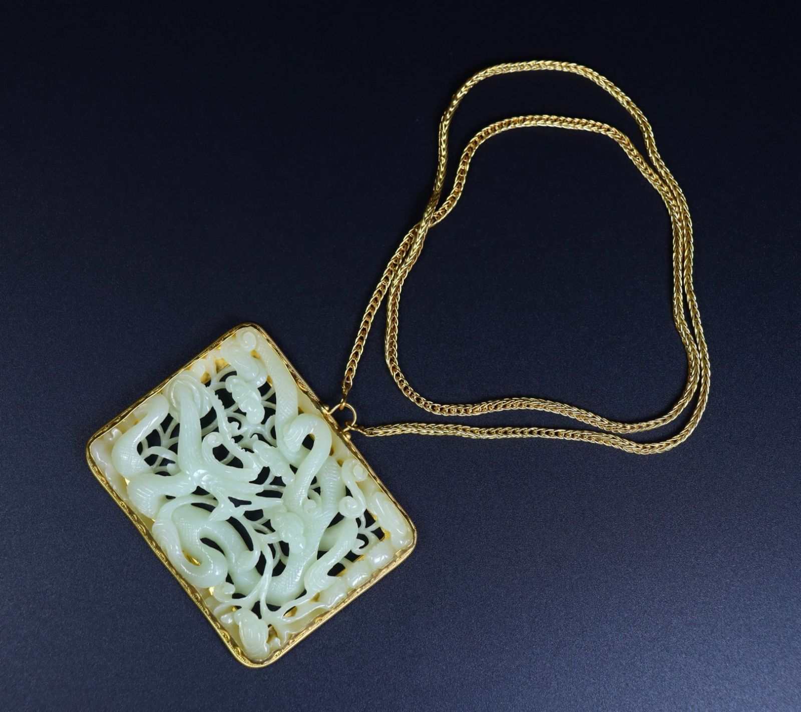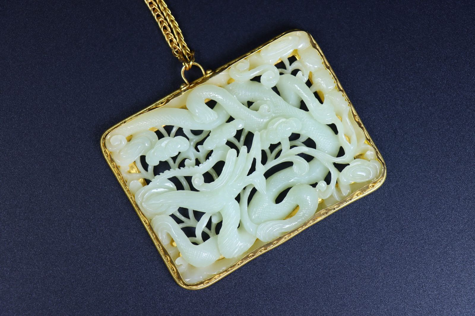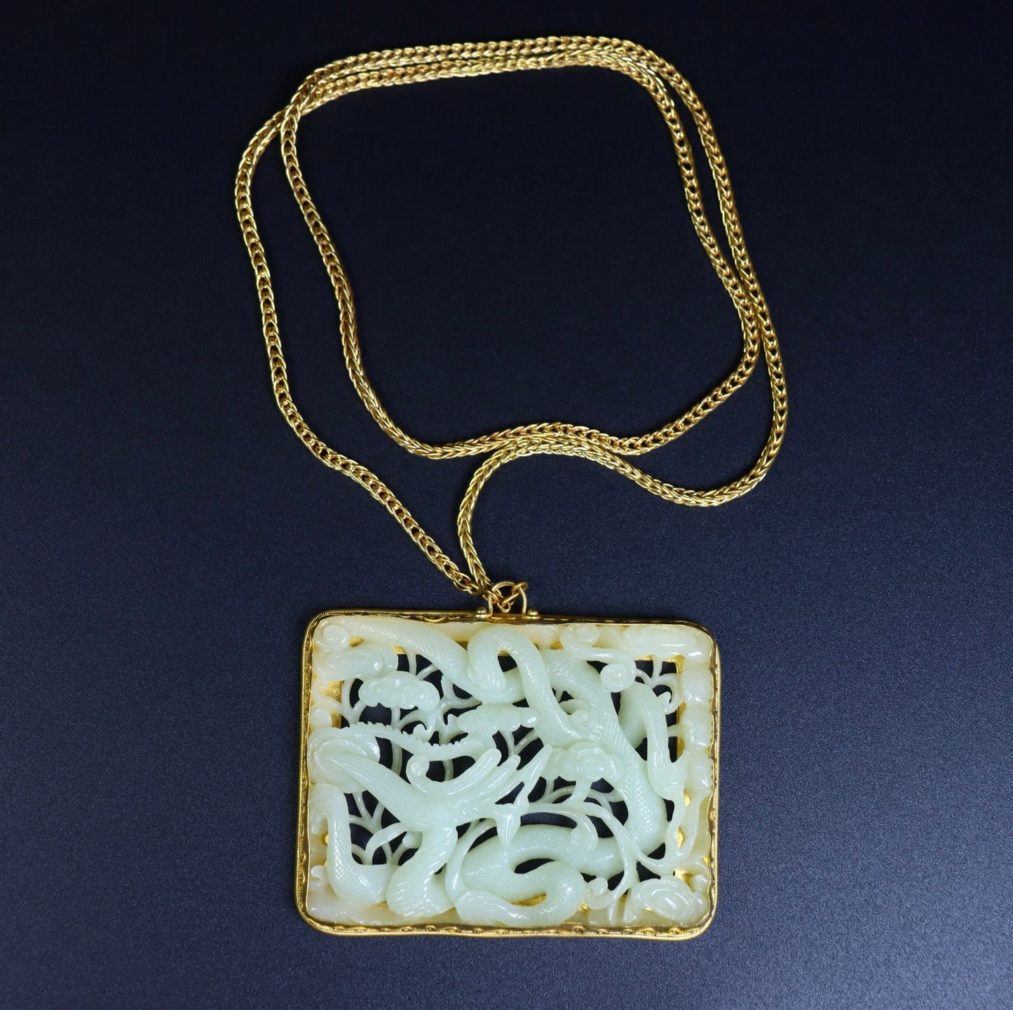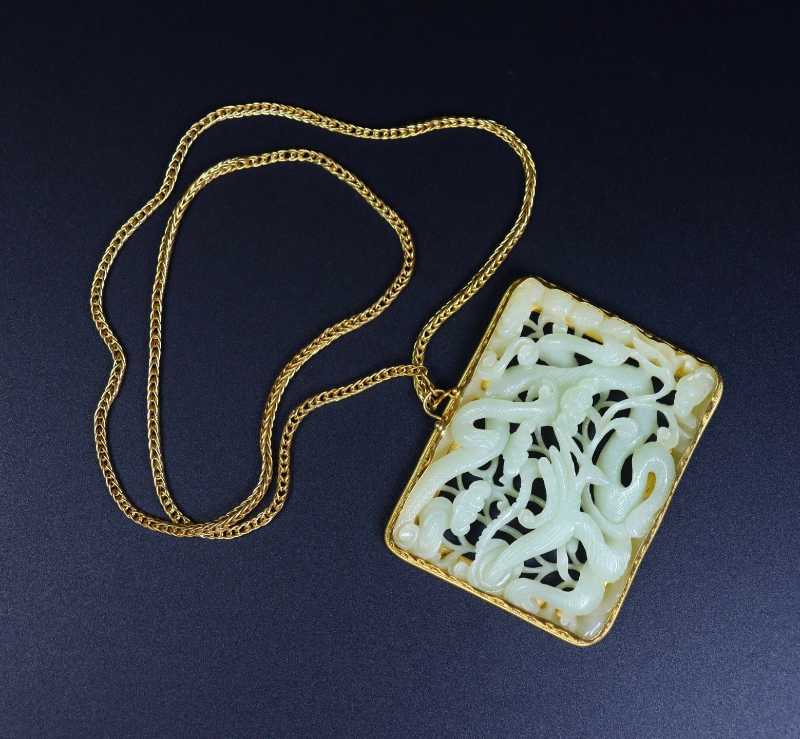 旧家蔵出し 和田玉細密彫 羊脂玉 透空彫 包銀 神獣紋 玉牌 玉佩 ペンダント 古美術品 収集家