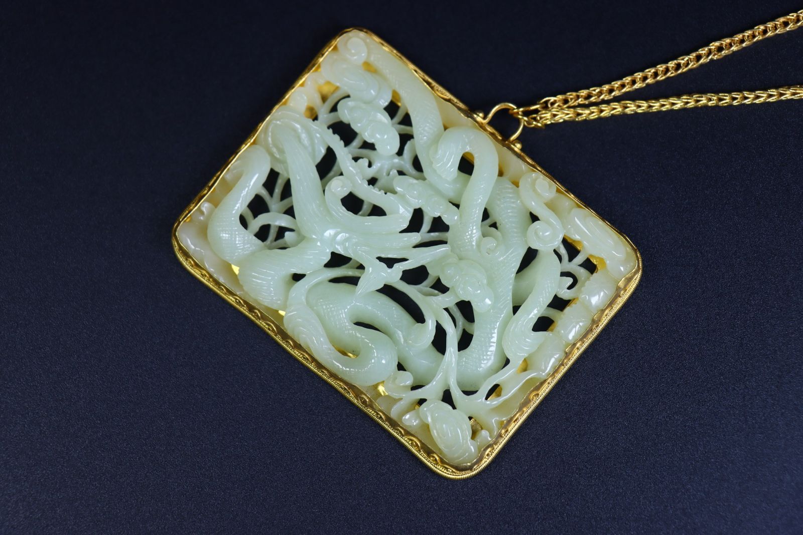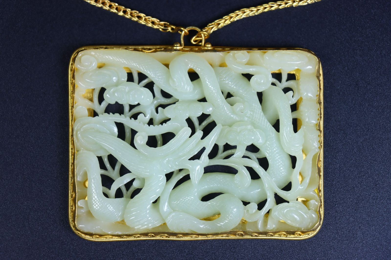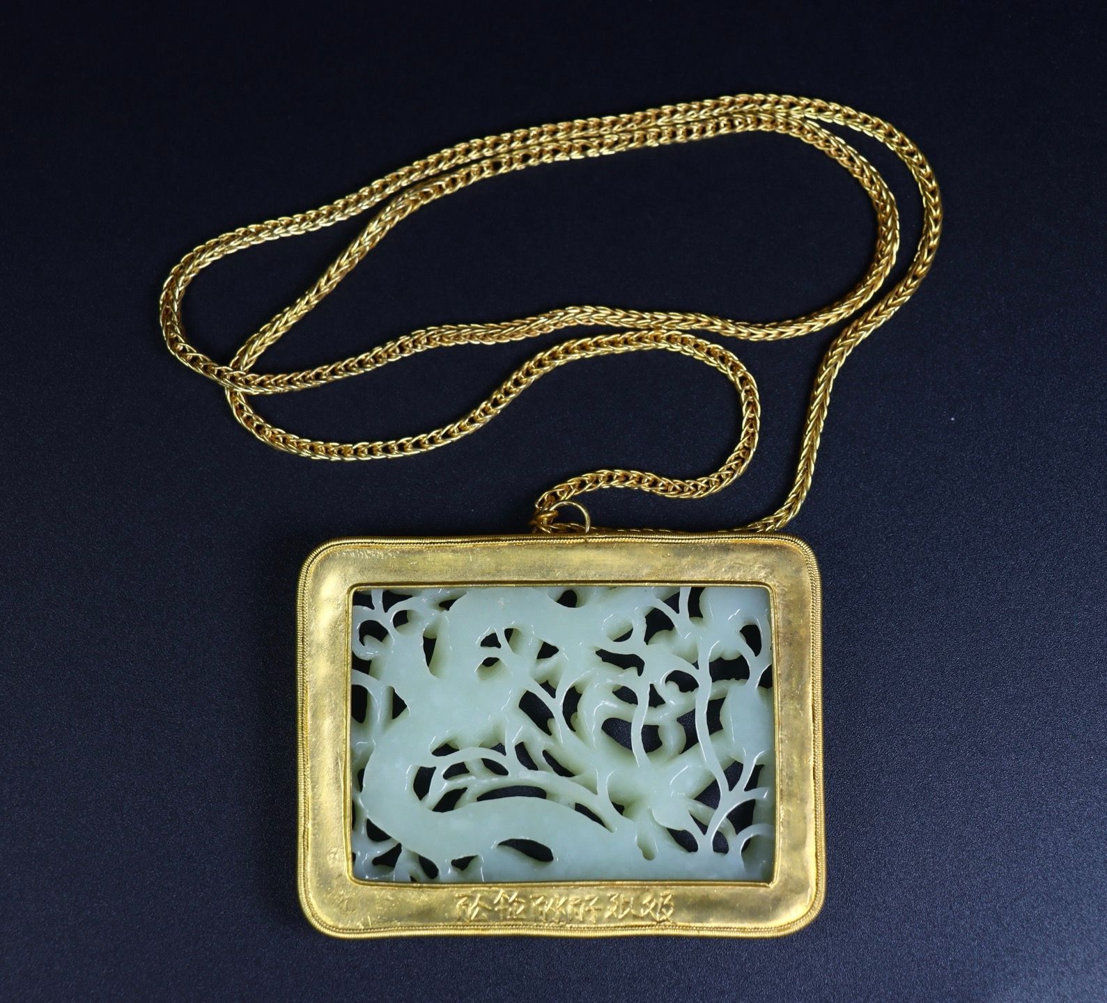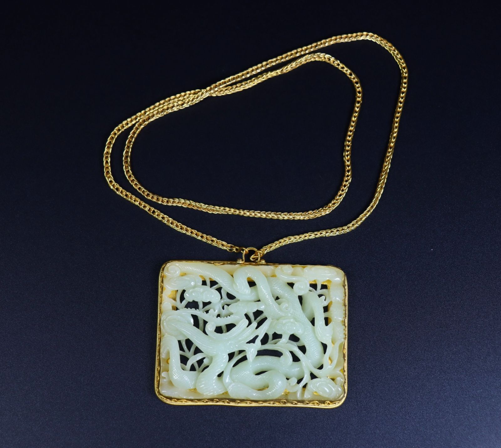 旧家蔵出し 和田玉細密彫 羊脂玉 透空彫 包銀 神獣紋 玉牌 玉佩 ペンダント 古美術品 収集家