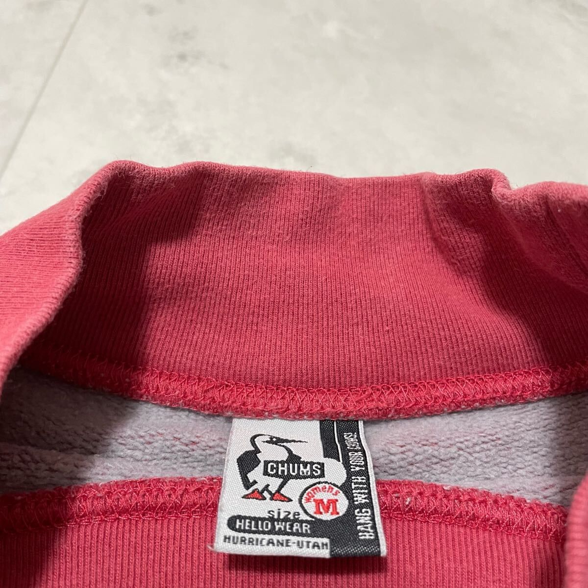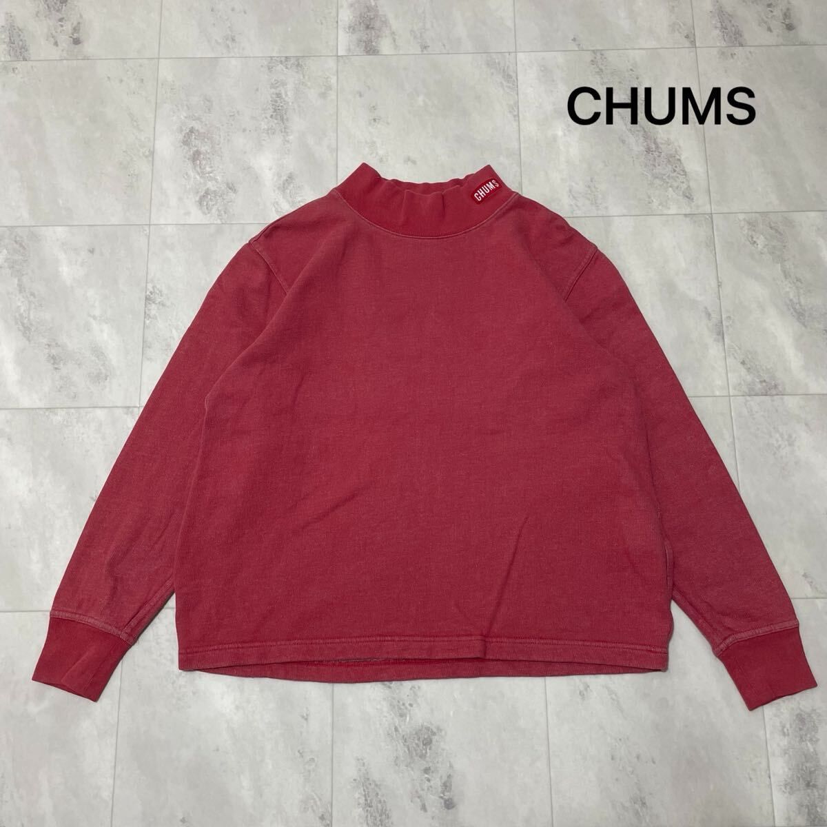 CHUMS チャムス sweat スウェット 長袖 薄手 ハイネック 刺繍ロゴ レディース サーモンピンク サイズM 玉FL3930