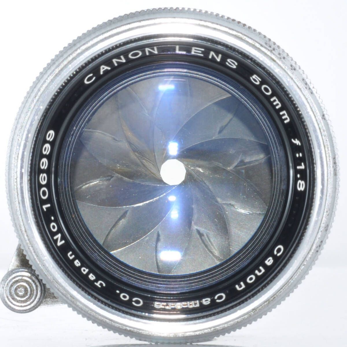 【キヤノン】Canon 50mm F1.8 ライカL39マウント クラシックレンズ フード付き #J342
