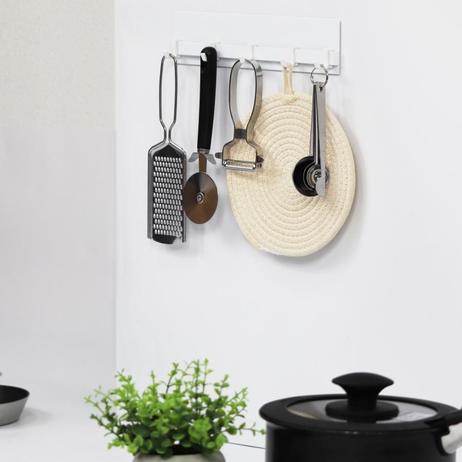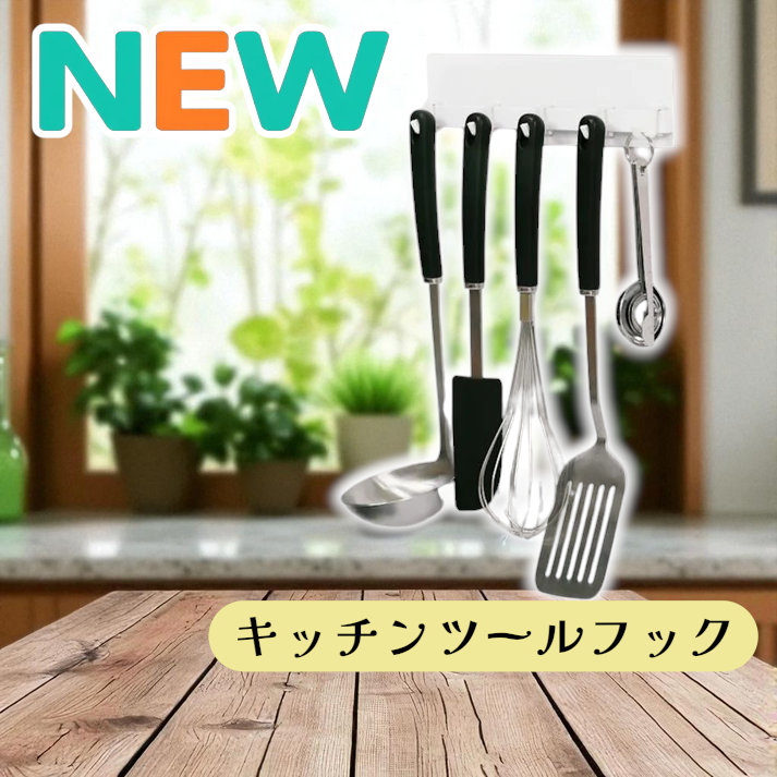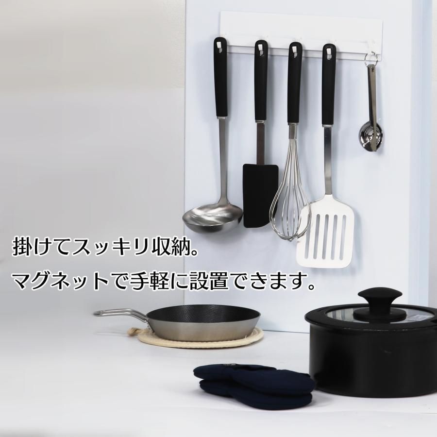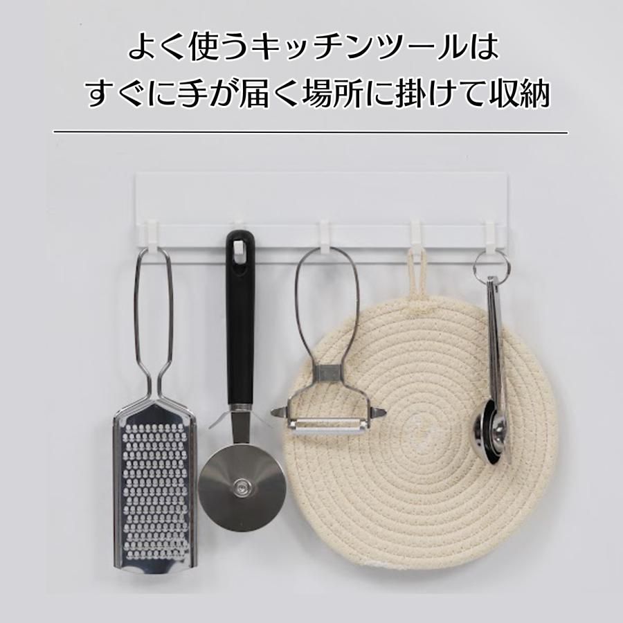 フックは可動式なのでキッチンツールを重なりません。収納する物に合わせてフックの位置を調整できます。