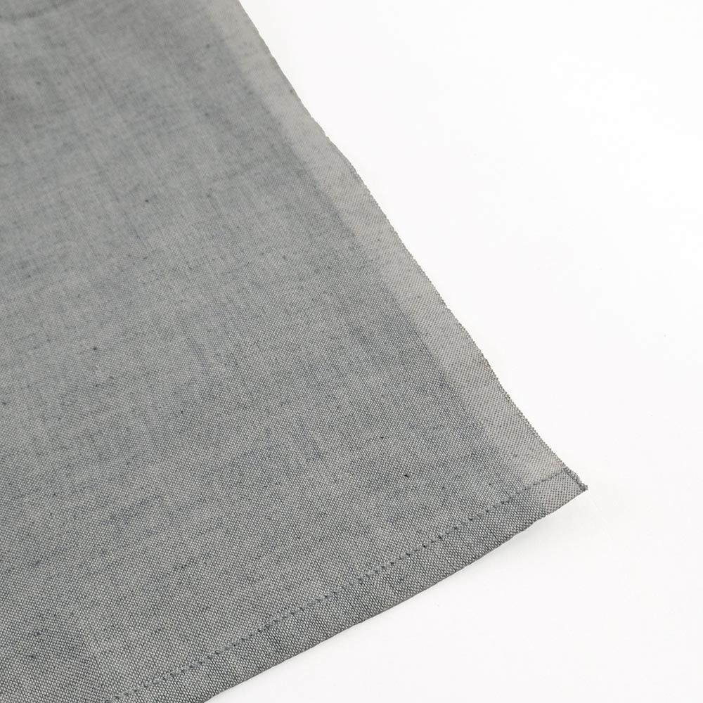 手紡ぎならではのネップ(糸の節)や、手織りによる織りムラ、さらには気候の変化によって生じる色ムラが、この生地に独自の個性と温もりを与えています。経糸と横糸の色の違いが織り成すシャンブレーの魅力と、カディの伝統的な手仕事が組み合わさり、自然素材の美しさと職人技が一つになった逸品です。