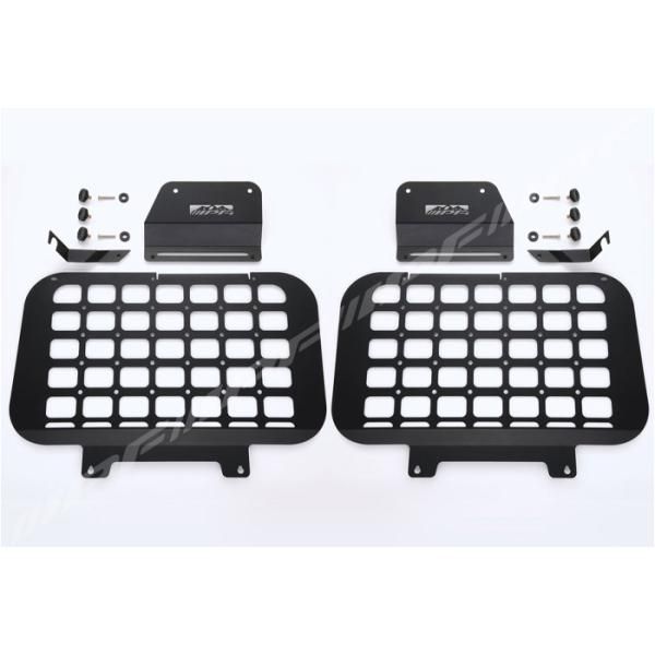 角穴と丸穴の開いたパネルによりモールシステムに対応した小物ケースやポーチの固定が可能。