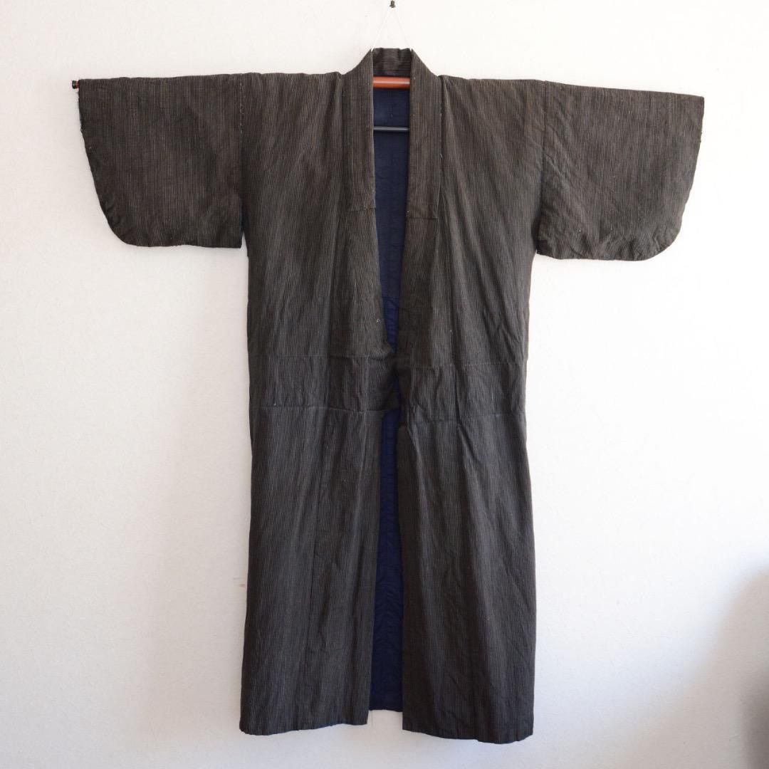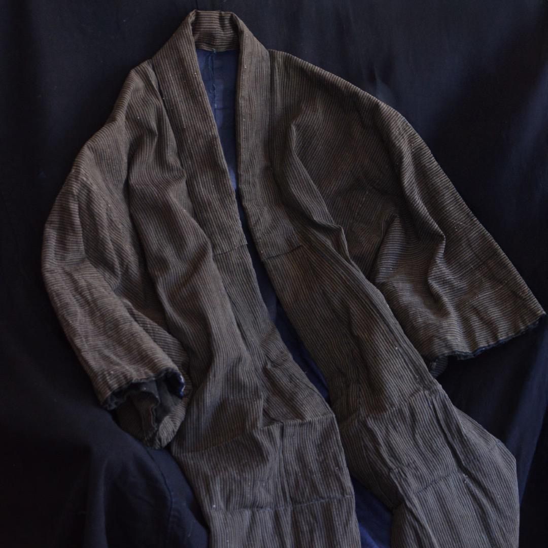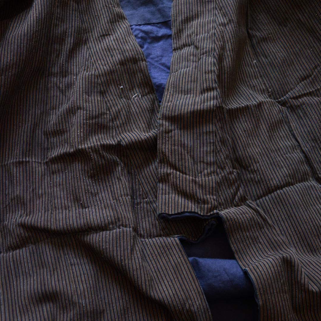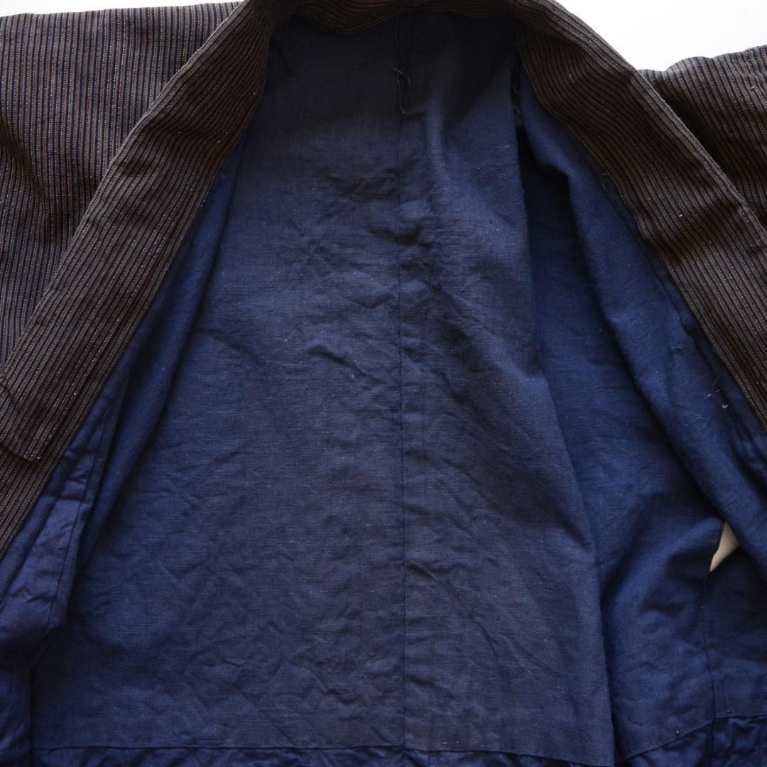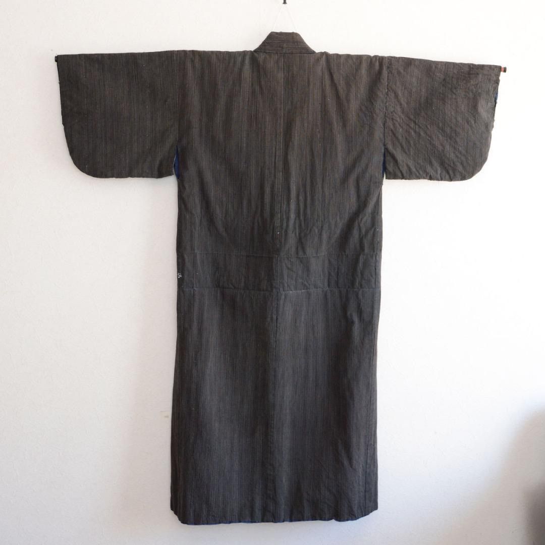 昭和初期から中期頃に仕立てられた、藍染の縞模様が美しい木綿の長着です。