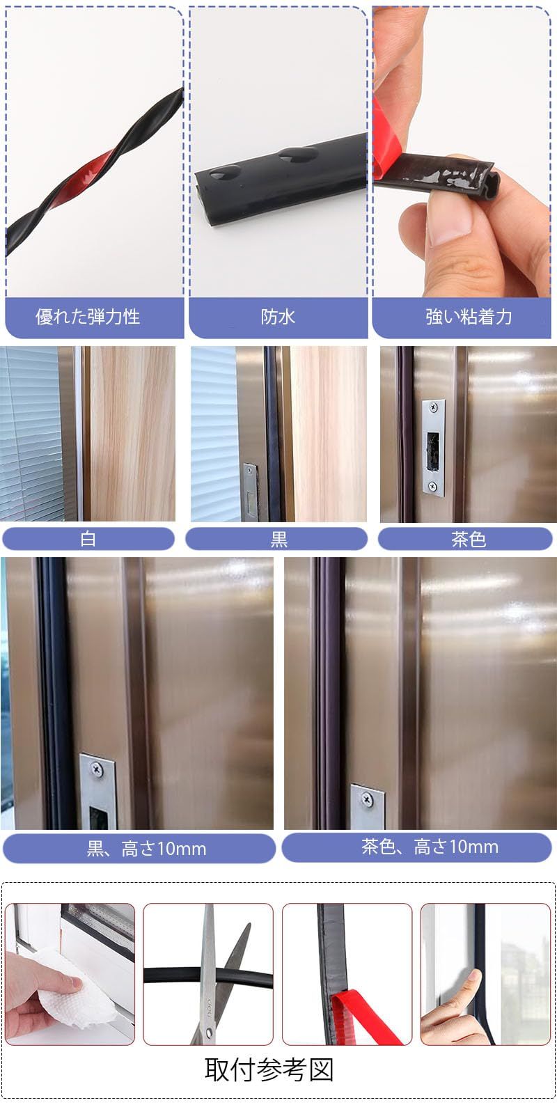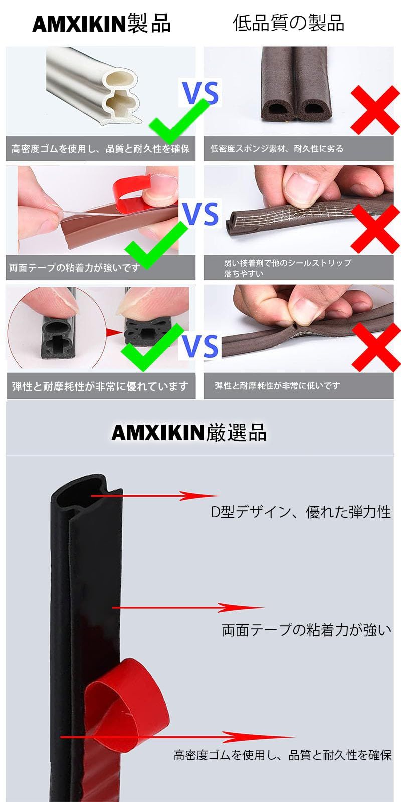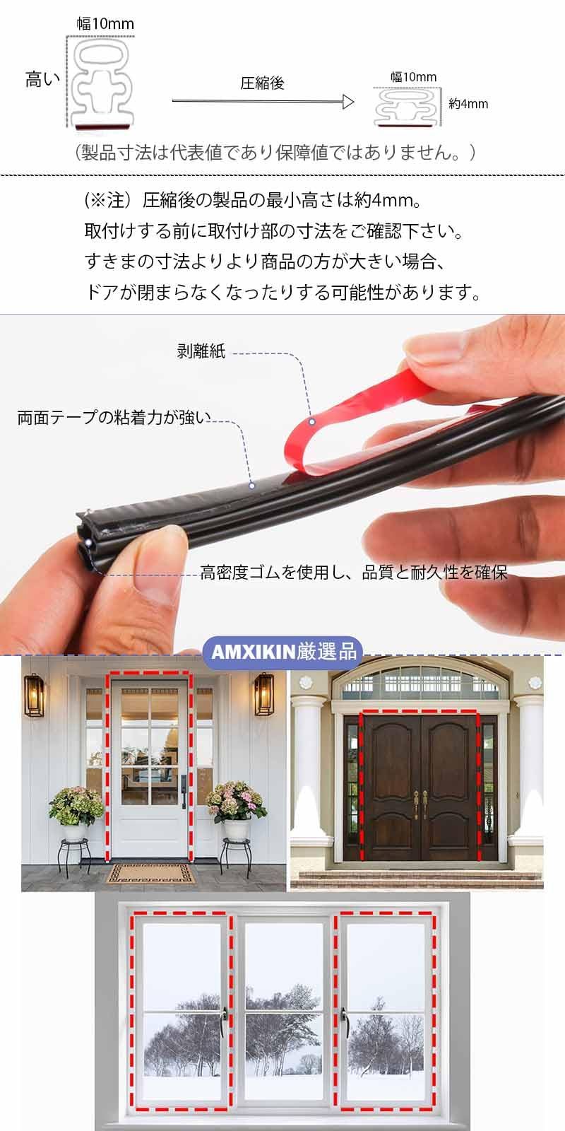 【仕様】サイズ:約6M・入数:1本・両面テープ付,サイズ:幅約10mm。圧縮後の厚さは約2.5-9.5mmです。ほかに、1mm/3mm/6mm/12mm/N+mmタイプがあります!【AMXIKIN】内で検索してください!(手作業による測定のため、12mmの差を許容してください。) ご使用前に使用箇所のホコリ・汚れ・湿気・油分を拭き取ってください。貼り付けができない、もしくは剥がれの原因となります。