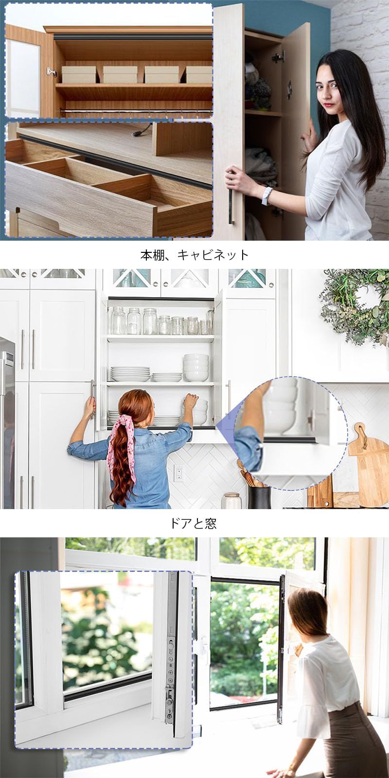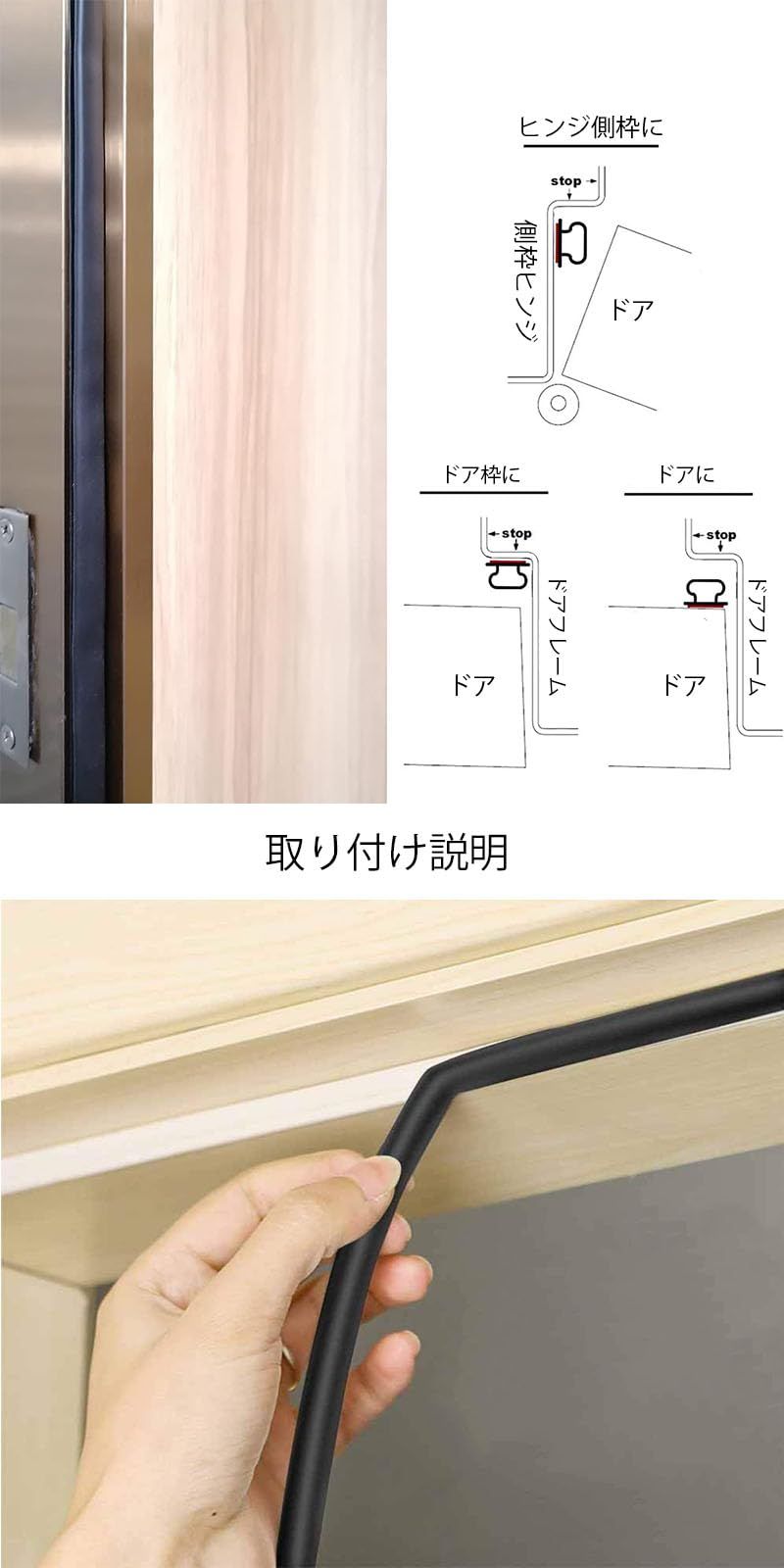 どの製品もドア1枚をぐるりと貼ることができる、たっぷりサイズの長さ6mです。ドアには色々なサイズがあり、標準的なドアの場合、室内・浴室ドアなら高さが1800mmから2000mm、玄関ドアなら2000mmから2330mm。標準的な室内、浴室、玄関ドアであれば、製品1つでドア1枚分のすき間を防ぐことができます。