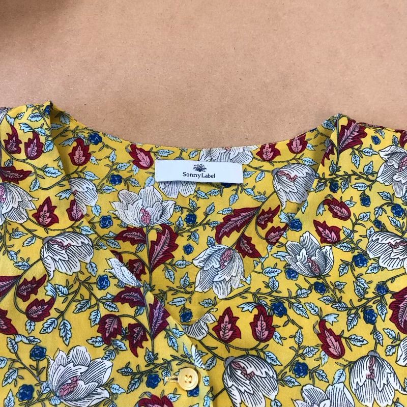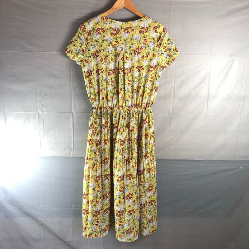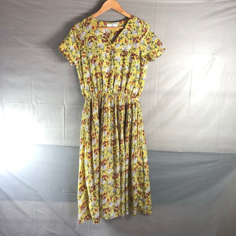 サニーレーベル Sonny Label アーバンリサーチ ワンピース ロング 半袖 花柄 Vネック プリーツ 裏地付き 黄色系 FREEサイズ 2025091400063