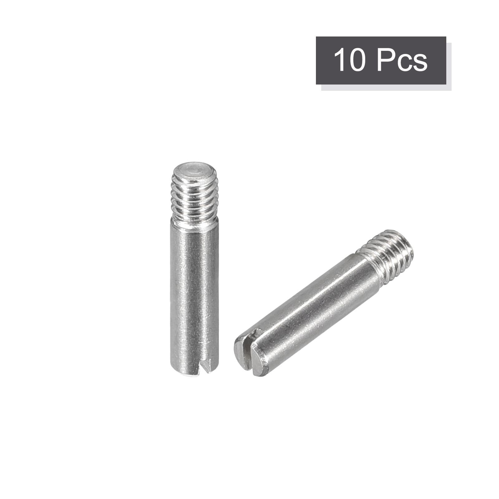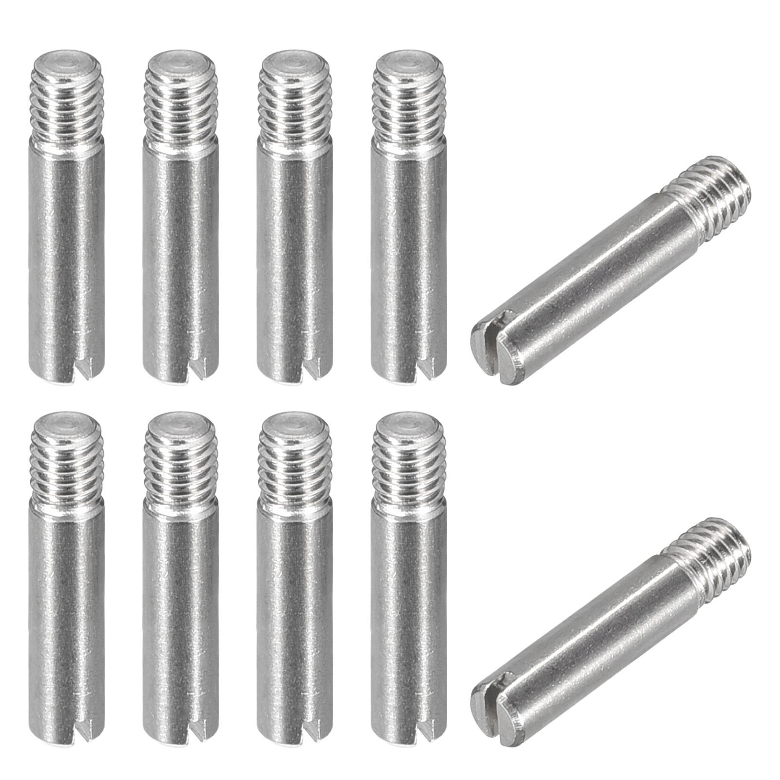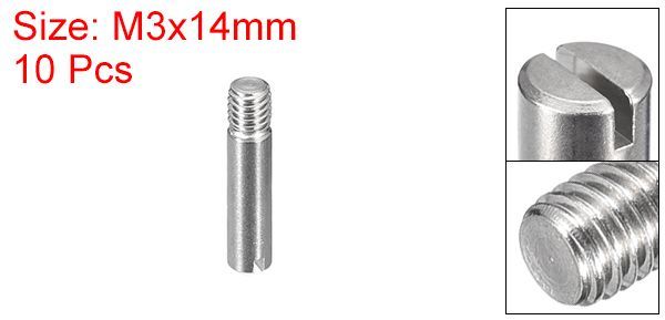 【仕様】製品名:ネジ式棚ダボ。サイズ:M3×14mm(スレッド径×総長)。スレッド長:3.6mm。スロット幅:0.6mm。パッケージ内容:ダボピン ×10個。