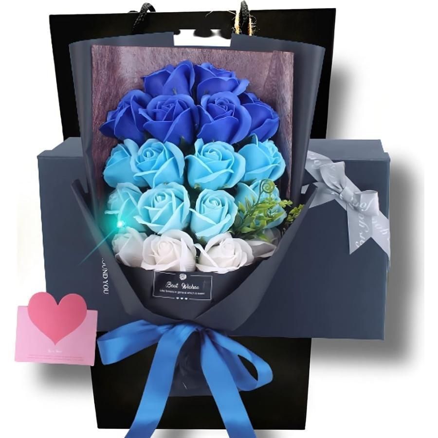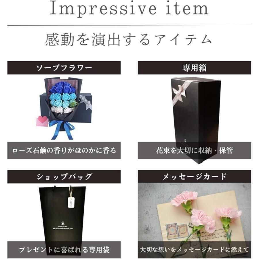 「鑑賞用・プレゼントに」薔薇の生花と変わらない大きさでブリザードフラワーやドライフラワーと異なり、花びら一枚一枚が華やかな香りのする石鹸素材で作られているため、枯れることがなく、観賞用・ギフト・プレゼントに最適な花束です。