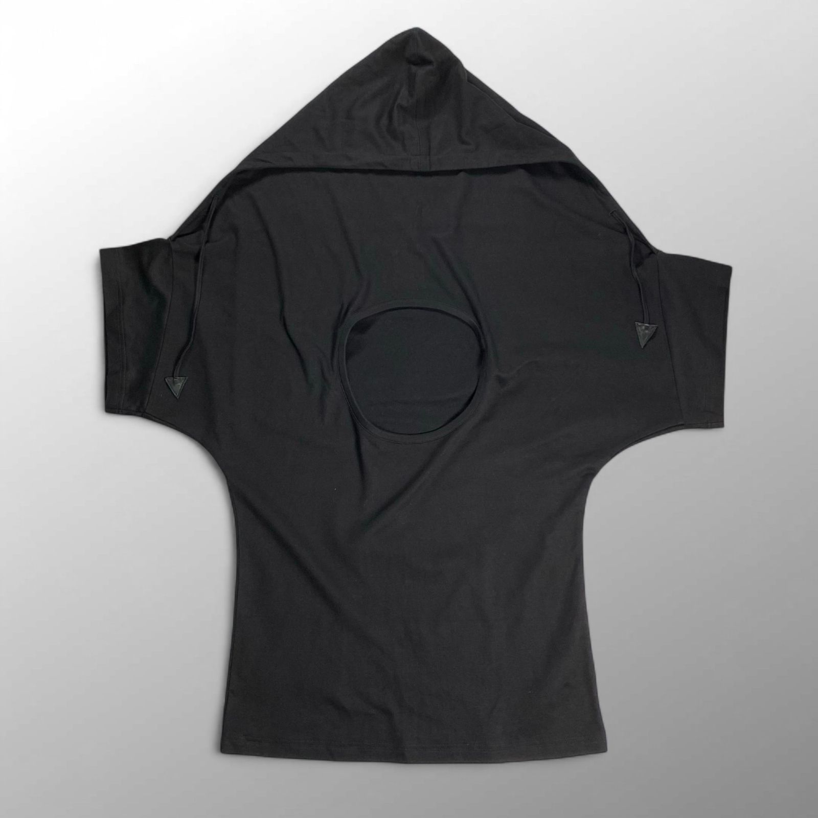 商品名:フーディTEE 半袖パーカー ブラック コットン100%