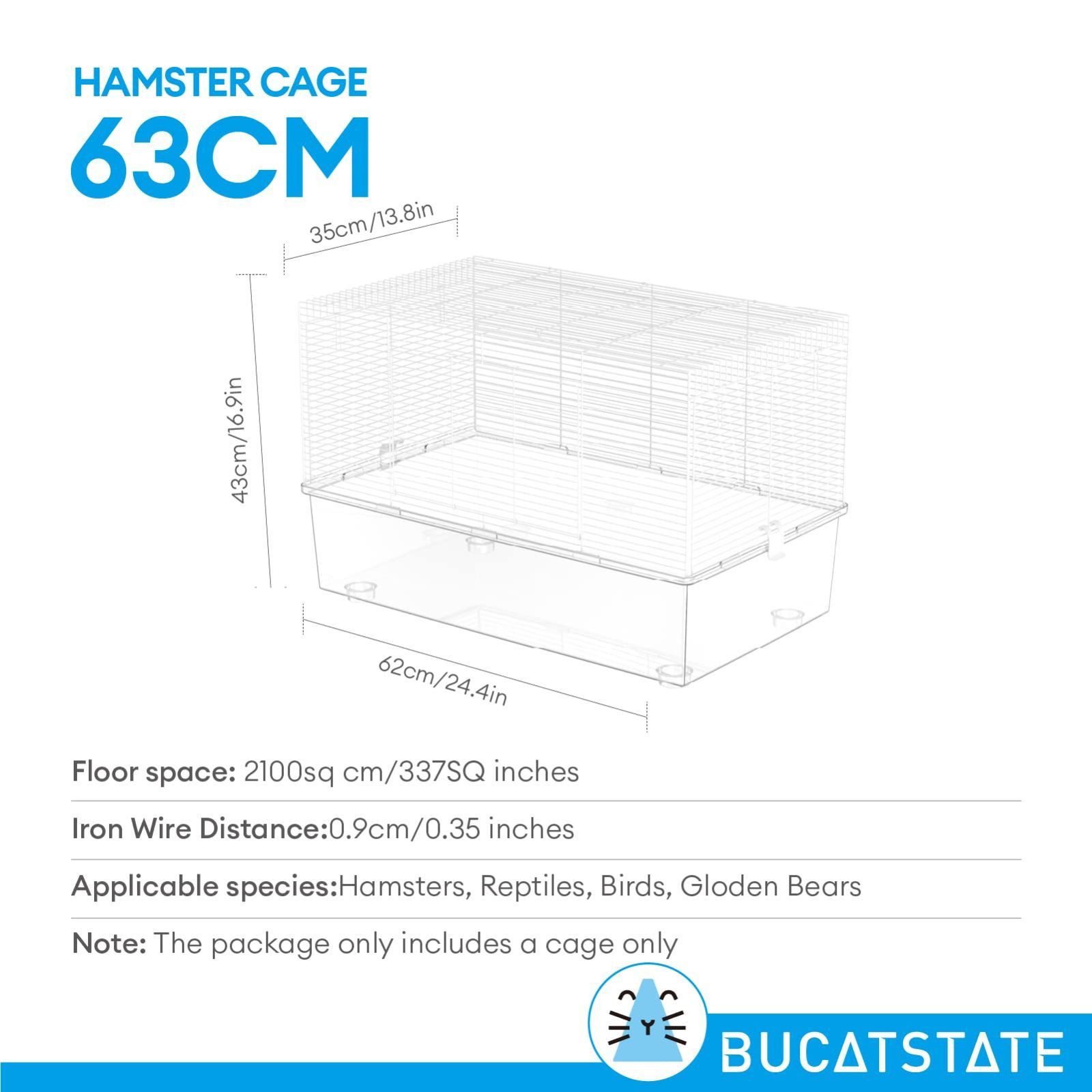 BUCATSTATE ハムスター ケージ 620 クリアケージ 大型サイズ 飼育ケージ 金網タイプ 通気 透明 深めトレイ お掃除しやすい 小動物用 620*350*430mm(外寸) ゴールデンハムスター キンクマハムスターなど適用 ケージ単品