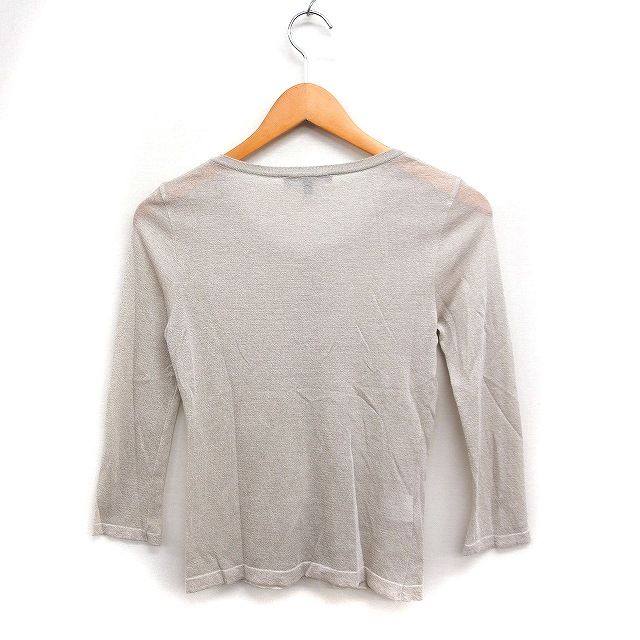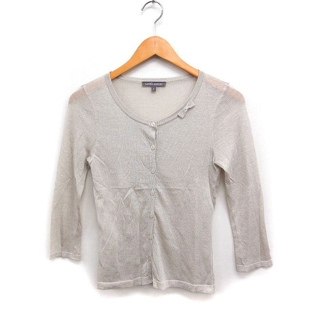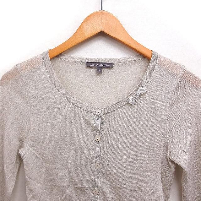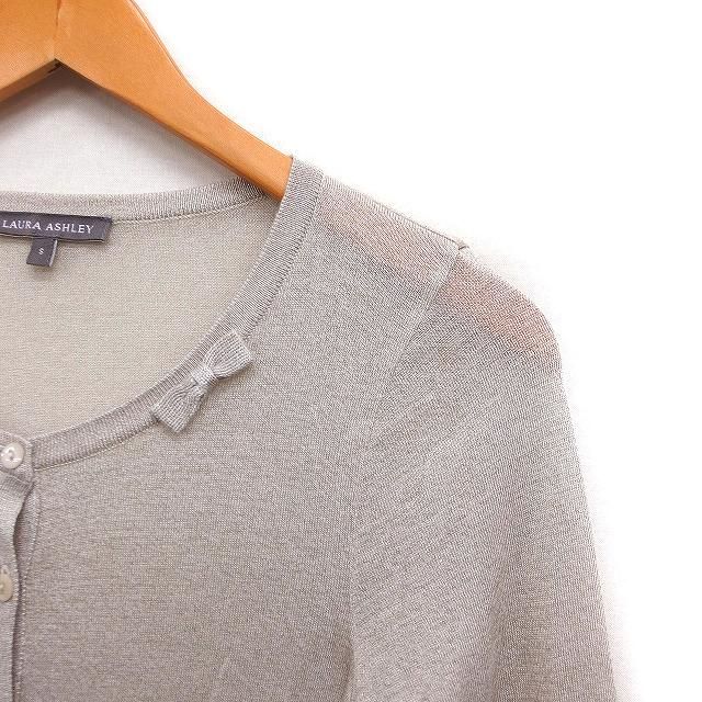 【商品名】ローラアシュレイ LAURA ASHLEY ニット カーディガン リボン 7分袖 無地 S グレージュ /FT25