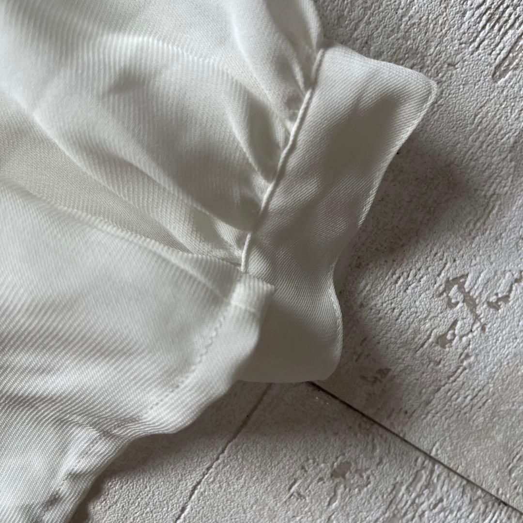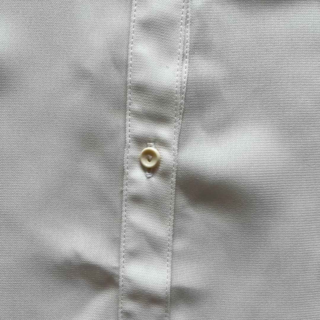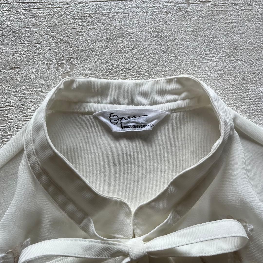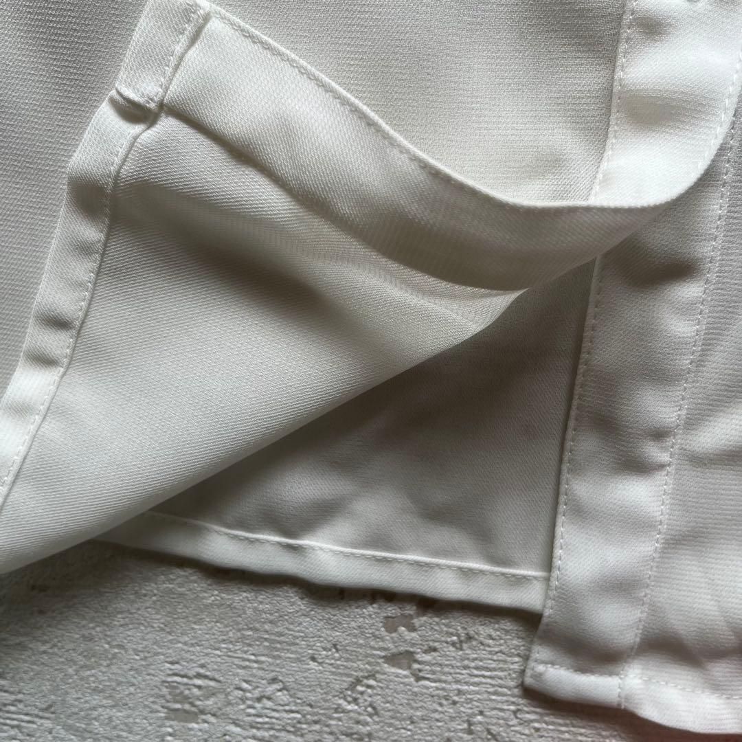清楚でクラシカルな雰囲気漂うホワイトブラウスです。胸元には繊細なフラワー刺繍があしらわれ、さらにリボンタイ付きでフェミニンな印象を演出してくれます。シンプルながらも華やかさがあり、スカートやワンピースとの相性も抜群。昭和レトロやヴィンテージスタイルが好きな方、古着女子コーデを楽しみたい方におすすめです。普段使いはもちろん、ちょっとしたお出かけやフォーマルシーンにも活躍できる万能アイテム。雰囲気のある一枚をお探しの方にぴったりです。