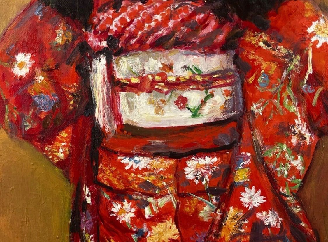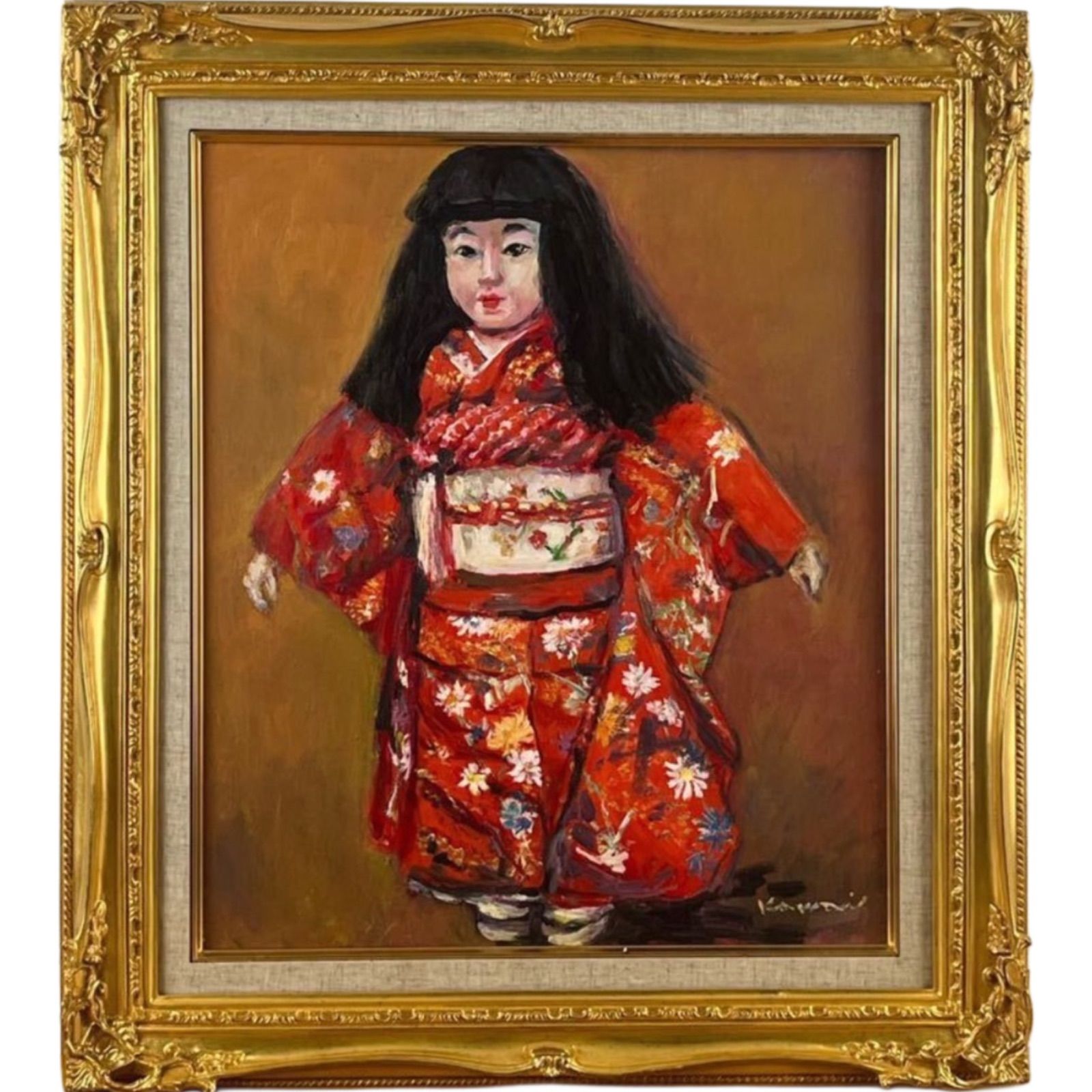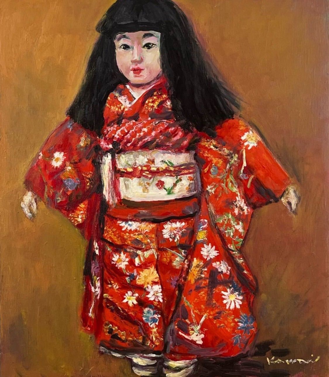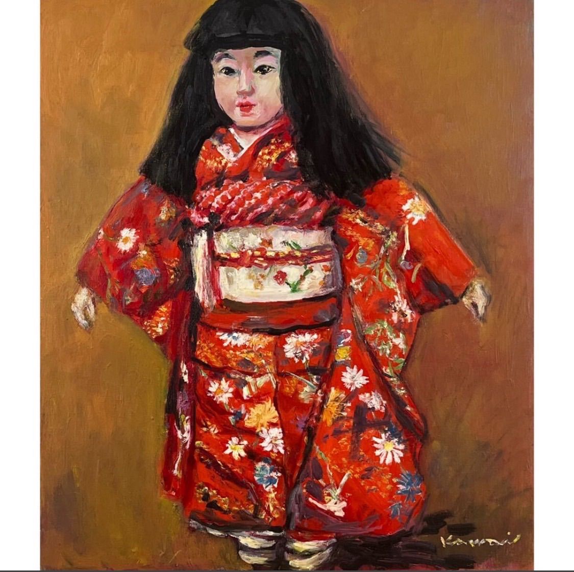 河合恒人 「日本人形」油彩 F10号 ローマン派美術協会理事長 日本美術家連盟会員 愛知県出身