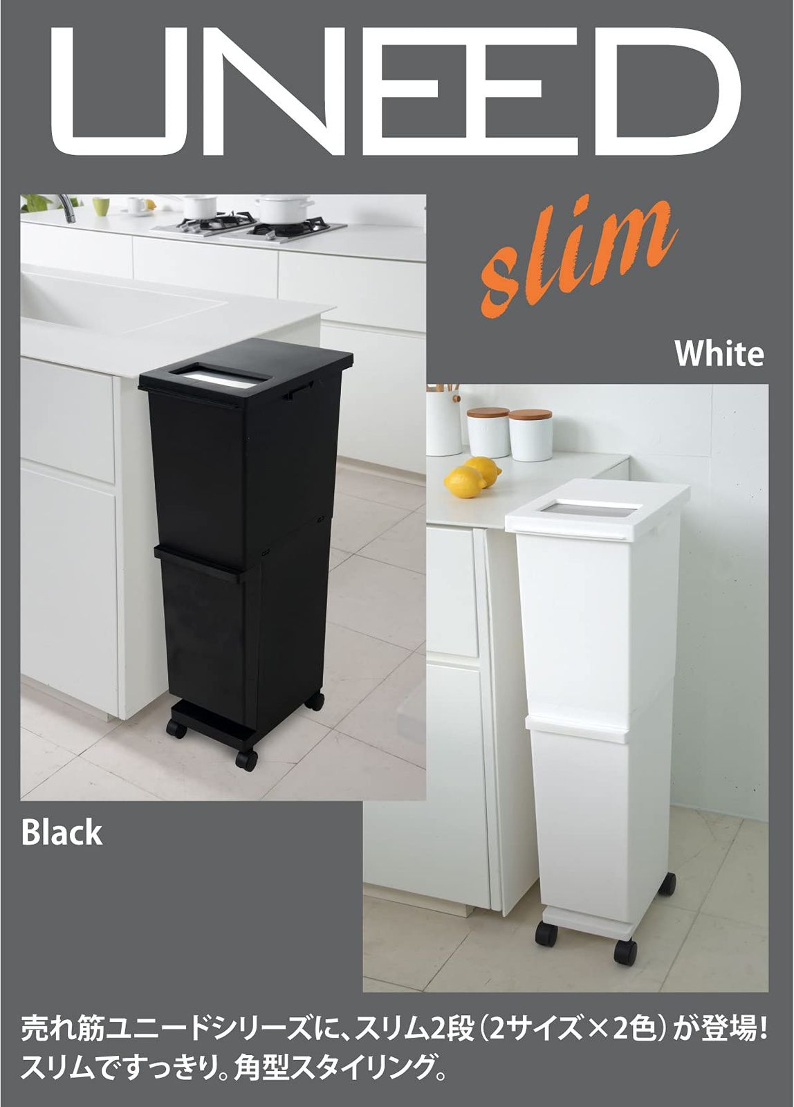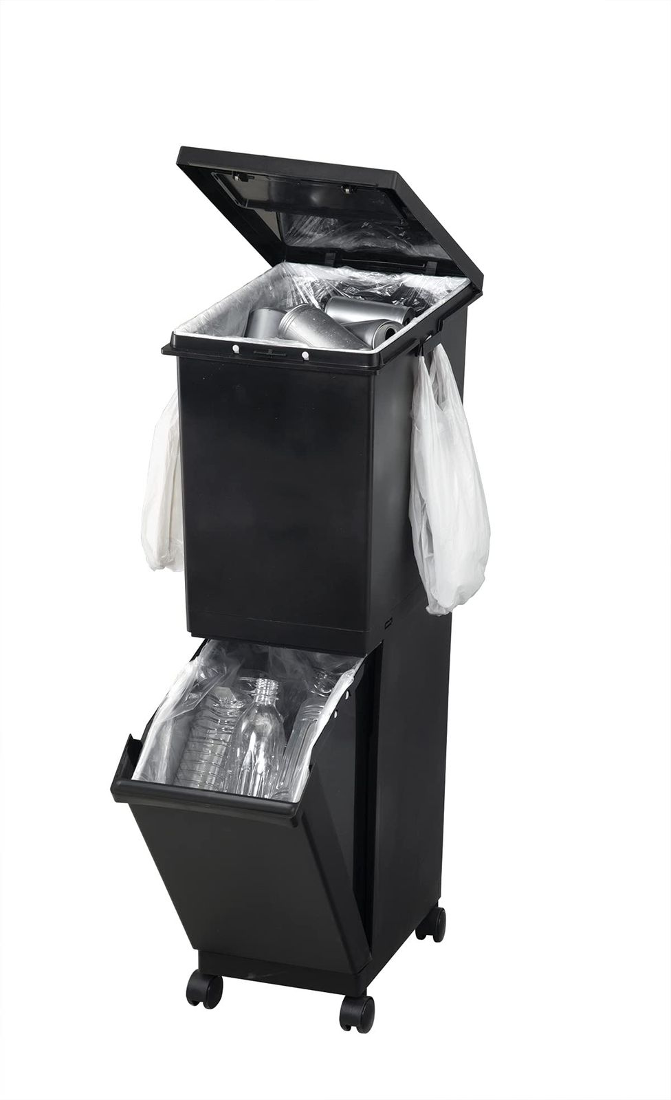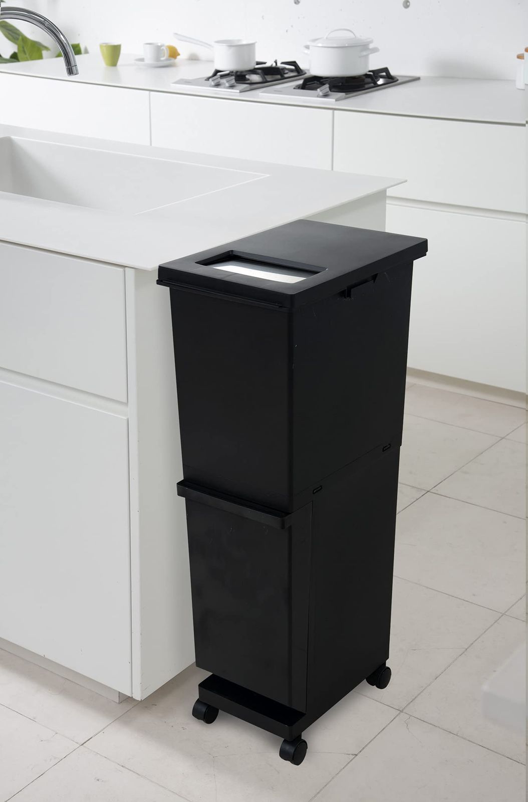 新輝合成(Shinki Gosei) トンボ ユニード ゴミ箱 2段 分別 蓋を開けずにごみを捨てられる スリム キャスター付 55リットル ブラック 奥行41×横27×高さ87cm 蓋付き 日本製