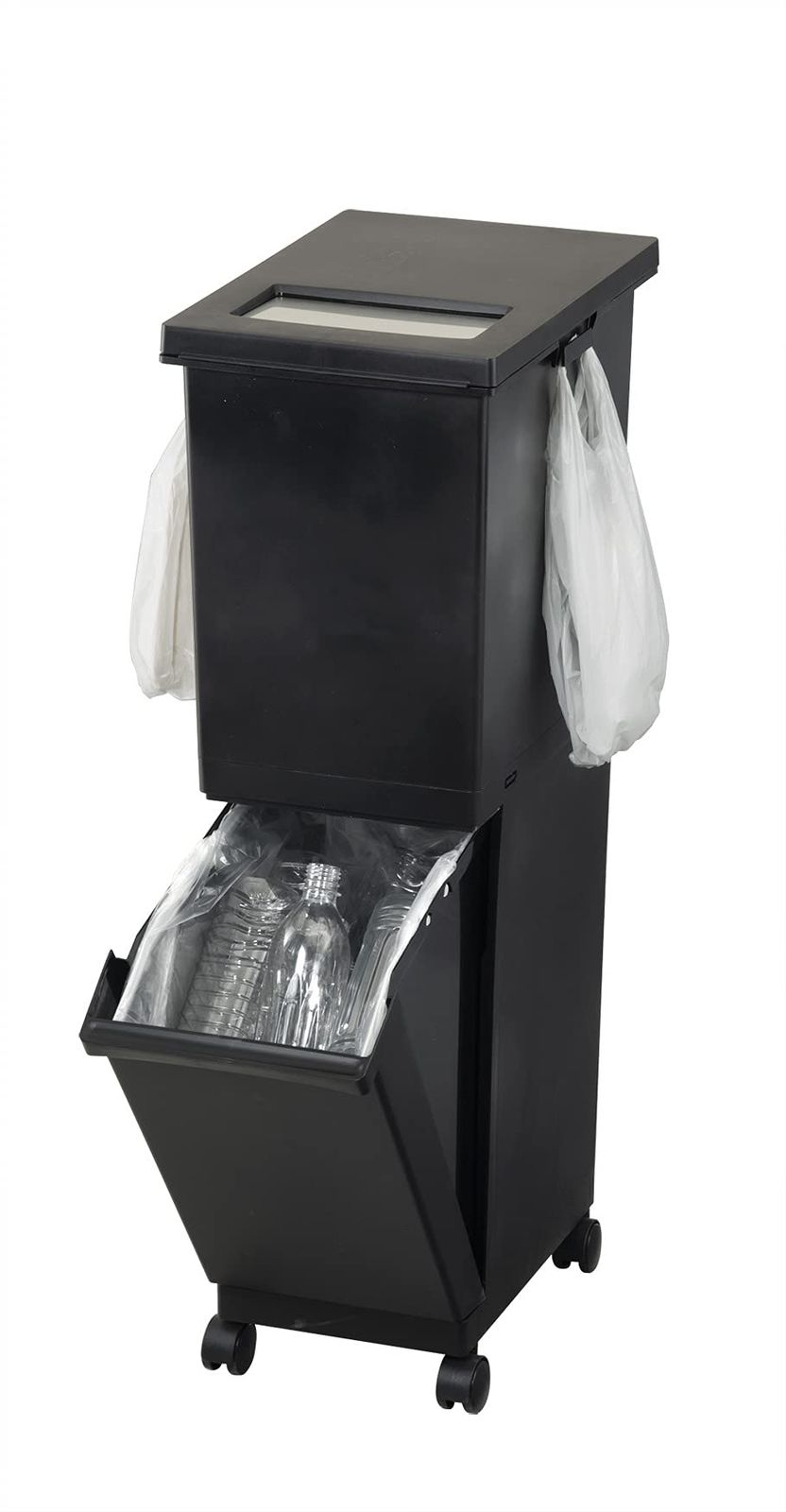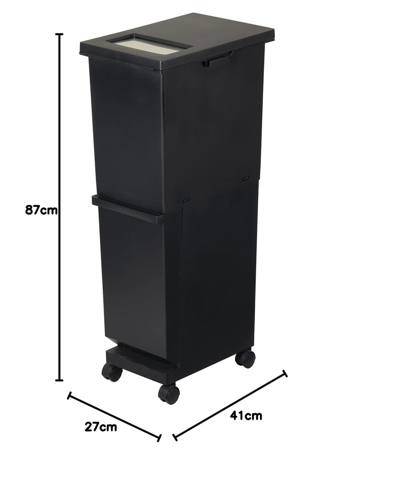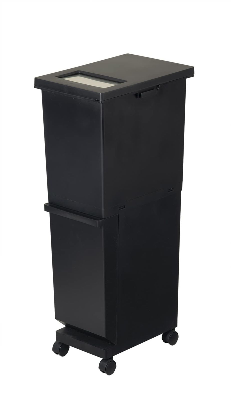 新輝合成(Shinki Gosei) トンボ ユニード ゴミ箱 2段 分別 蓋を開けずにごみを捨てられる スリム キャスター付 55リットル ブラック 奥行41×横27×高さ87cm 蓋付き 日本製