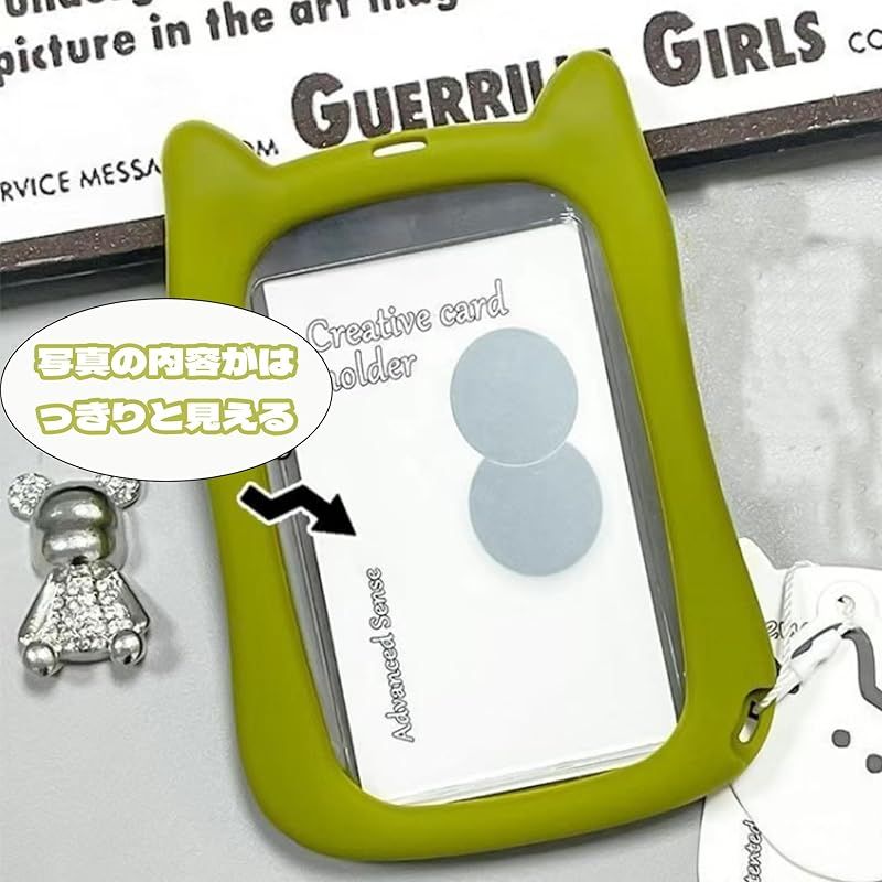 【可愛いデザイン】定期券ケース 透明なケースと猫耳の組み合わせで カードが可愛らしくておしゃれに見えます 特に猫好きの方におすすめです