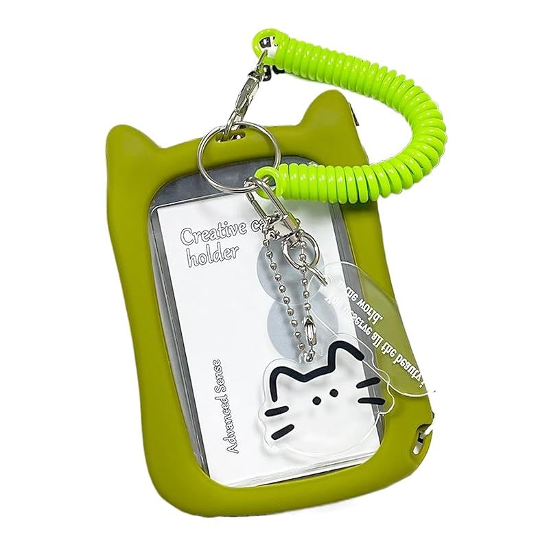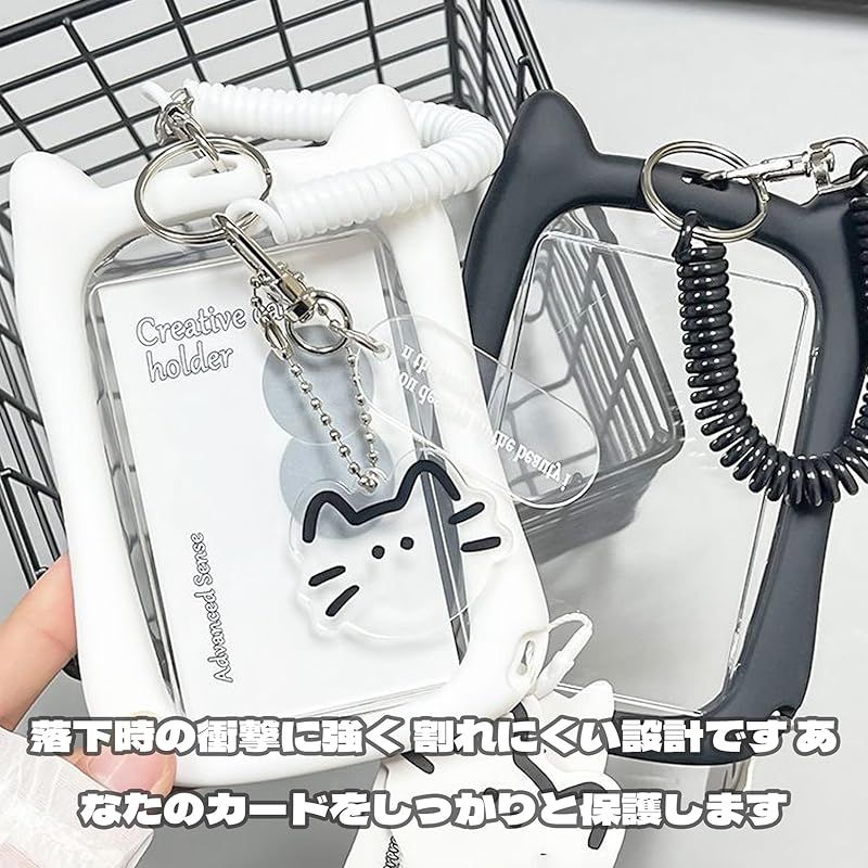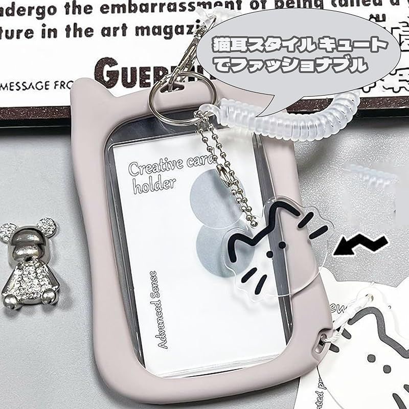 定期入れ 本体サイズ:高さ11.5cm、幅8cm。身分証明書やクレジットカードなど 同じサイズと厚さのカードを収納できます 柔らかいシリコン製で 透明なケースと猫耳の組み合わせで カードが可愛らしくておしゃれに見えます はスプリングロープを使用して手首に装着でき 異なる太さの手首に対応し カードを使用する際も取り出す必要なく カードの取り付けと取り外しが非常に簡単です