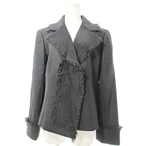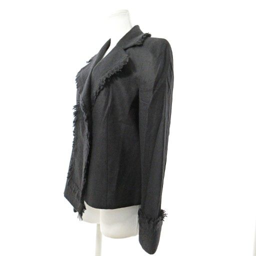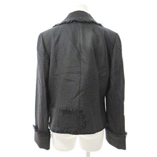 【商品名】レリアン Leilian テーラードジャケット ブレザー ウール アンゴラ混 ストレッチ フリンジ 11 黒 ブラック 0918 ■YHS3