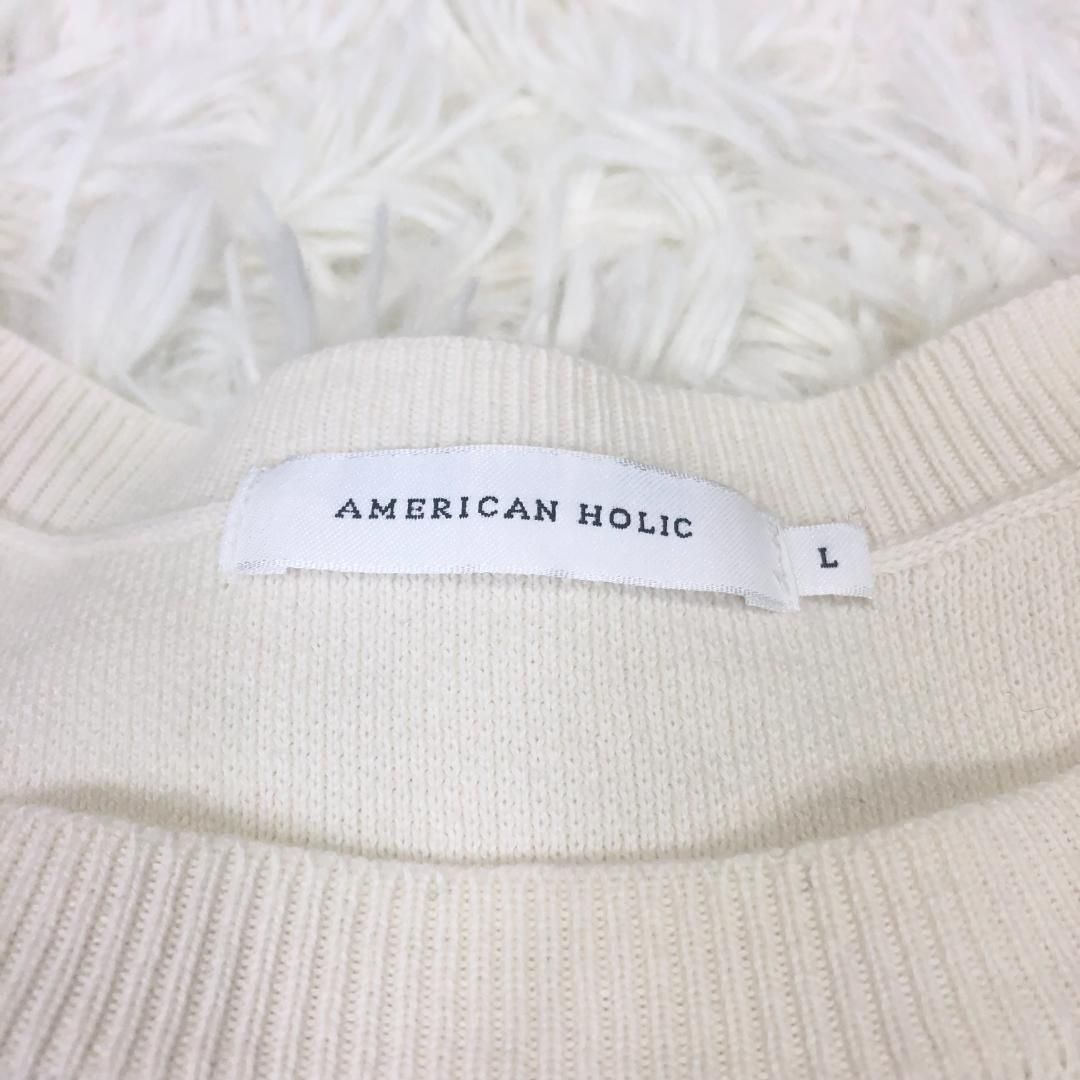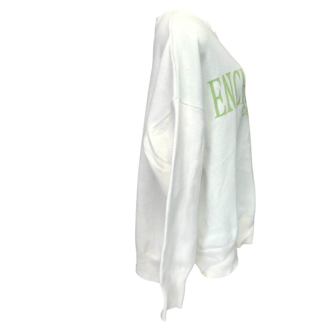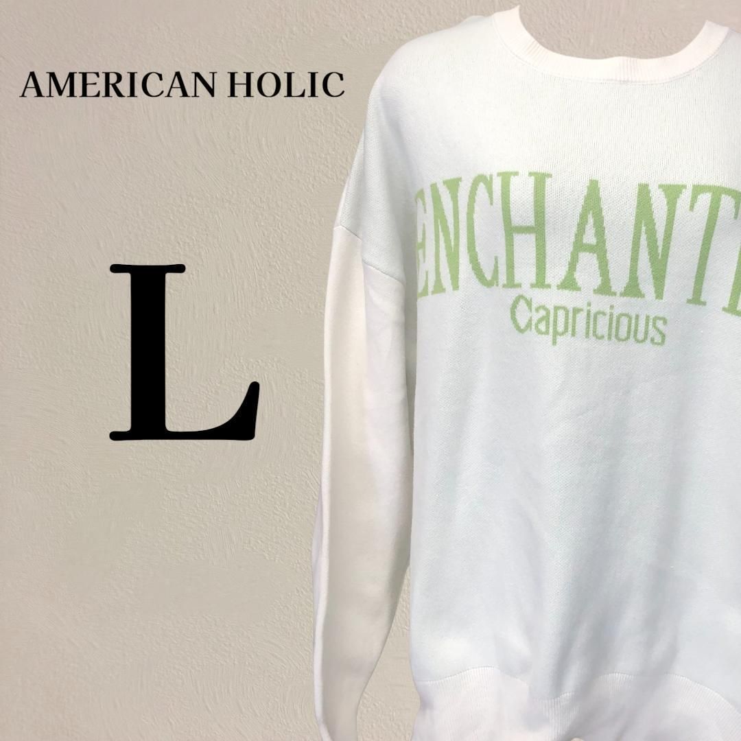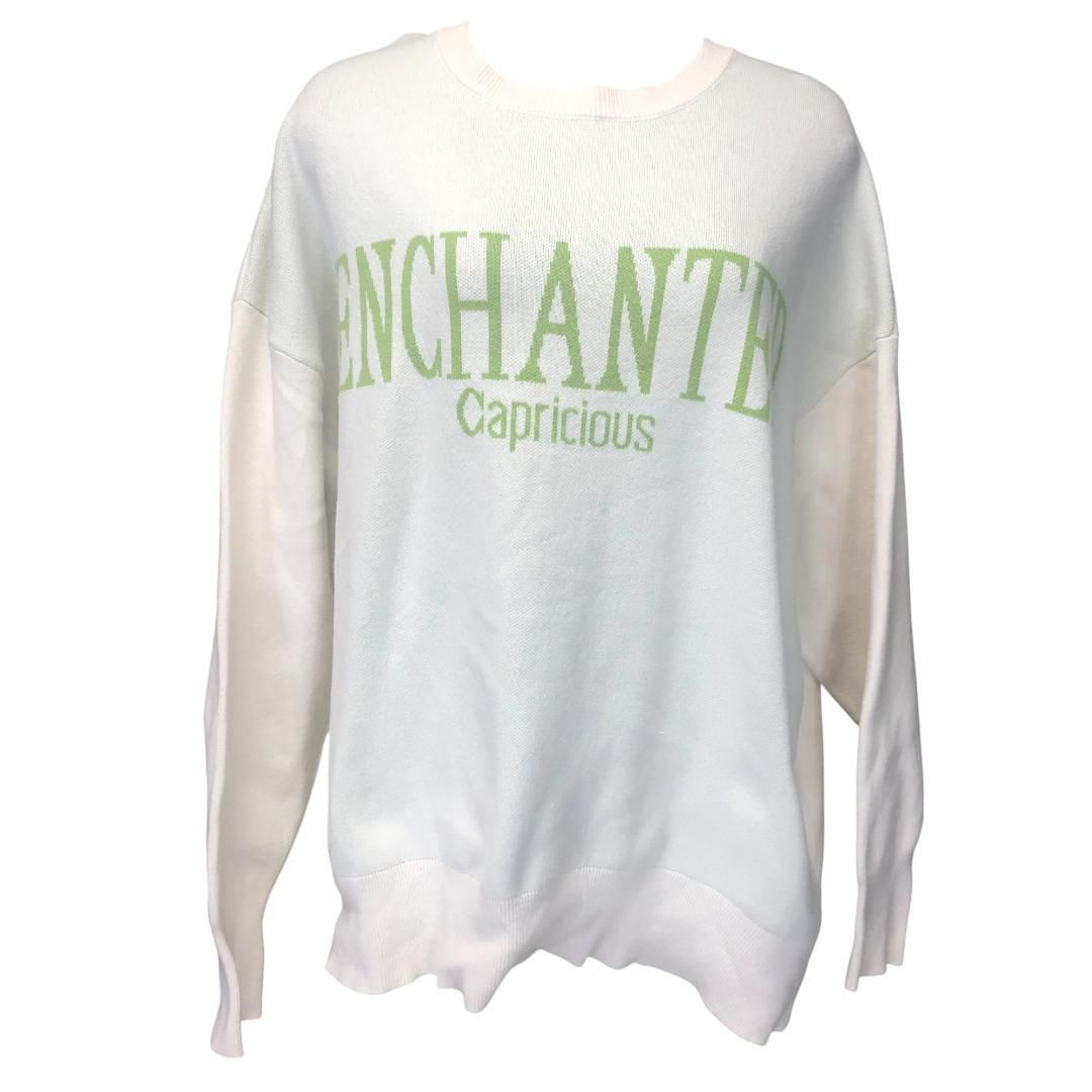 アメリカンホリックのゆったりとしたサイズ感、ロゴニットプルオーバーです。フロントに「ENCHANTE Capricious」のロゴがデザインされていて、着こなしのアクセントになります。後ろの丈が少し長く、両サイド裾に10cm位スリットがあります。