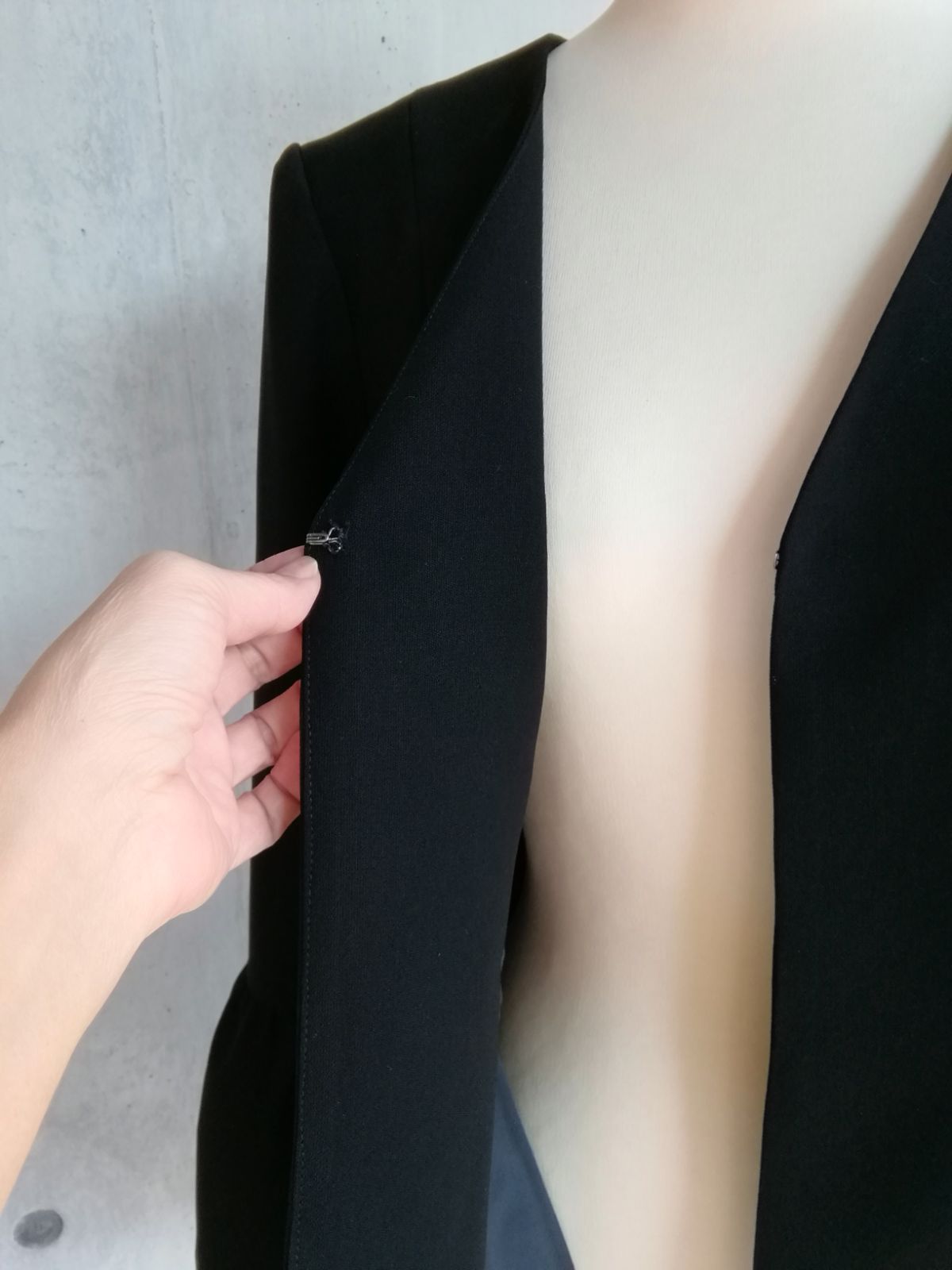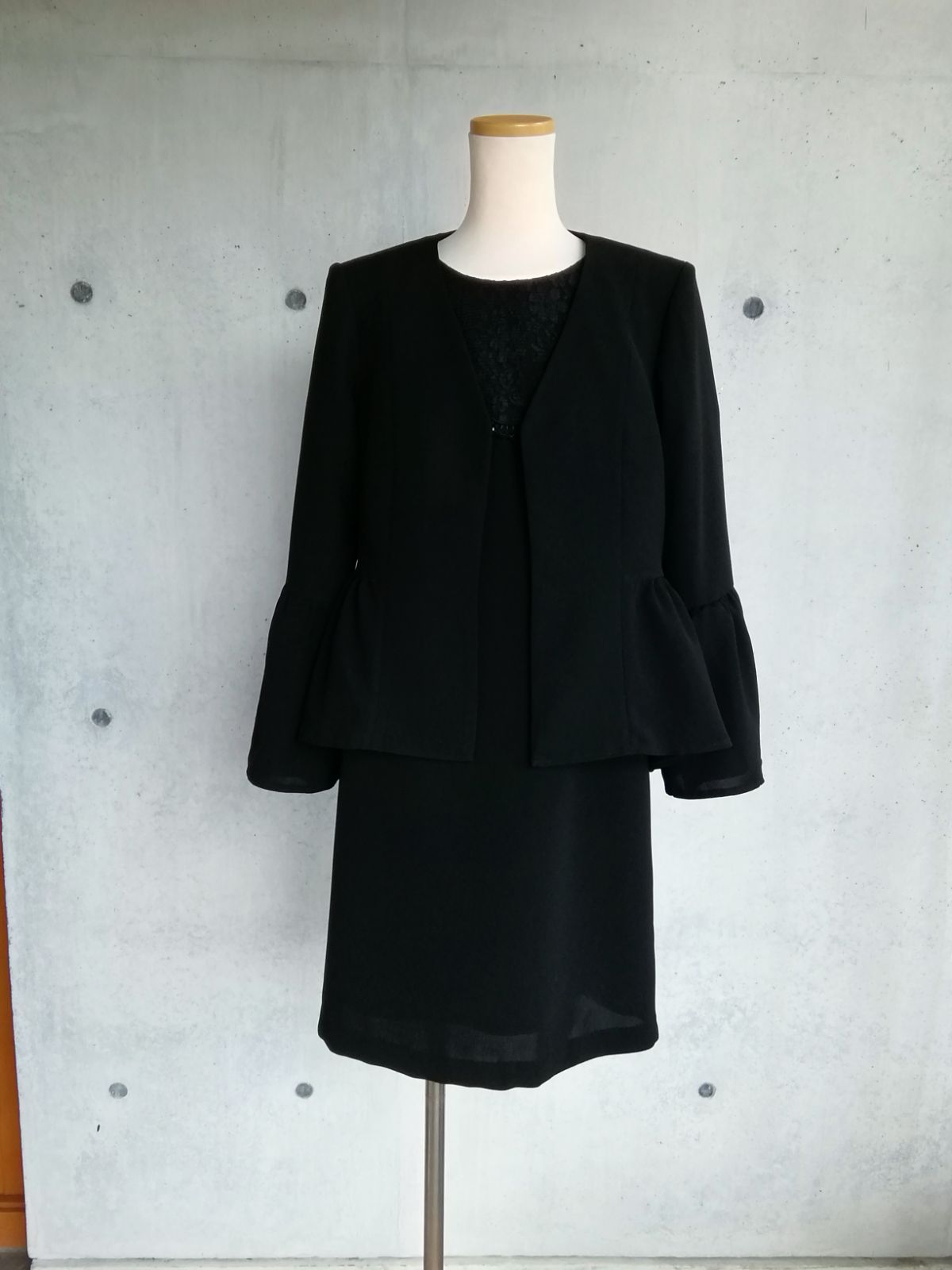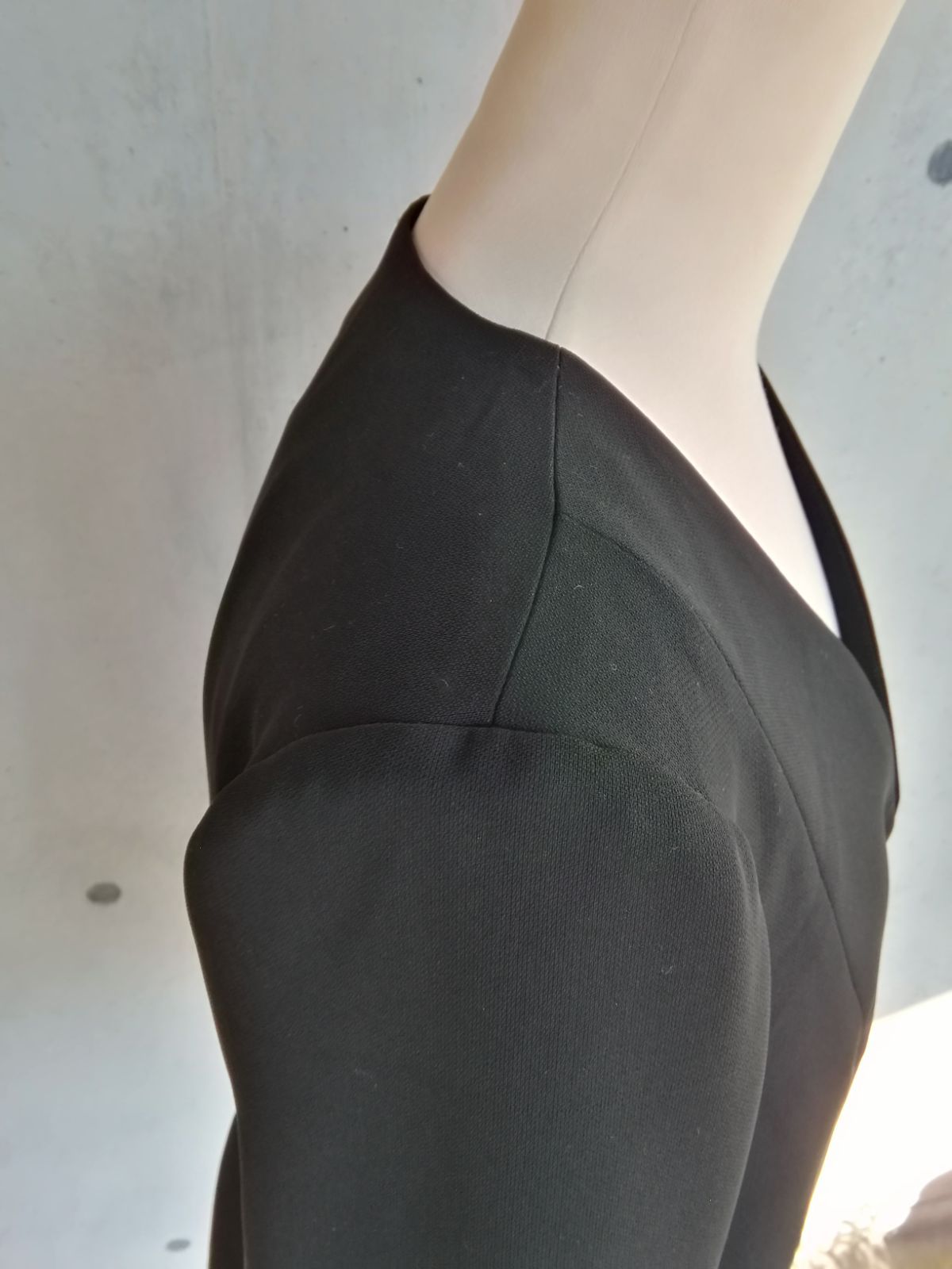 シンプルなブラックフォーマル用生地で作ったVネックのジャケットです。