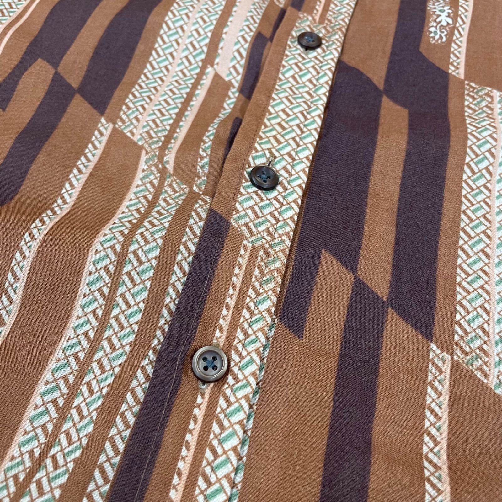 ・商品名: ’70s KENNINGTON 総柄 長袖シャツ ケニントン 70年代 衿芯入り ロングスリーブ ヴィンテージビンテージ vintage ユーズド USED 古着