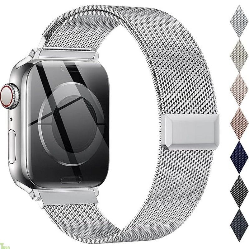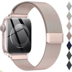 [OULUOQI] アップルウォッチ用のバンド コンパチブル 49mm 46mm 45mm 44mm 42mm 41mm 40mm 38mm ステンレス ベルト 長さ調節 男女兼用 マグネット 留め金 メッシュ 通気 Watch Serie