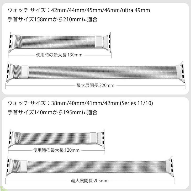 [OULUOQI] アップルウォッチ用のバンド コンパチブル 49mm 46mm 45mm 44mm 42mm 41mm 40mm 38mm ステンレス ベルト 長さ調節 男女兼用 マグネット 留め金 メッシュ 通気 Watch Series 11/10/9/8/7/6/5/4/SE3/SE2/Ultra3 に対応