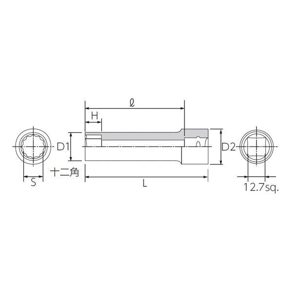 12.7SQディープソケット12角12mm(パック入)B4L-12W-S