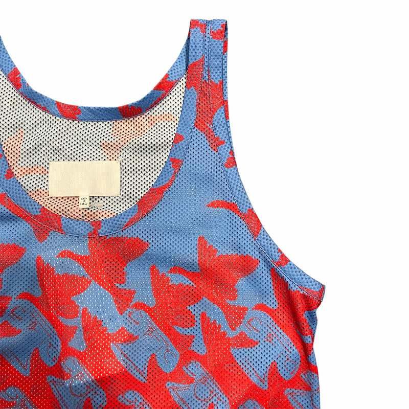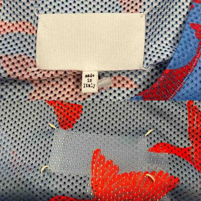 【商品名】メゾンマルジェラ Maison Margiela タグ付き ワンピース ひざ丈 ノースリーブ メッシュ 総柄 36 赤 レッド 青 ブルー 129033983
