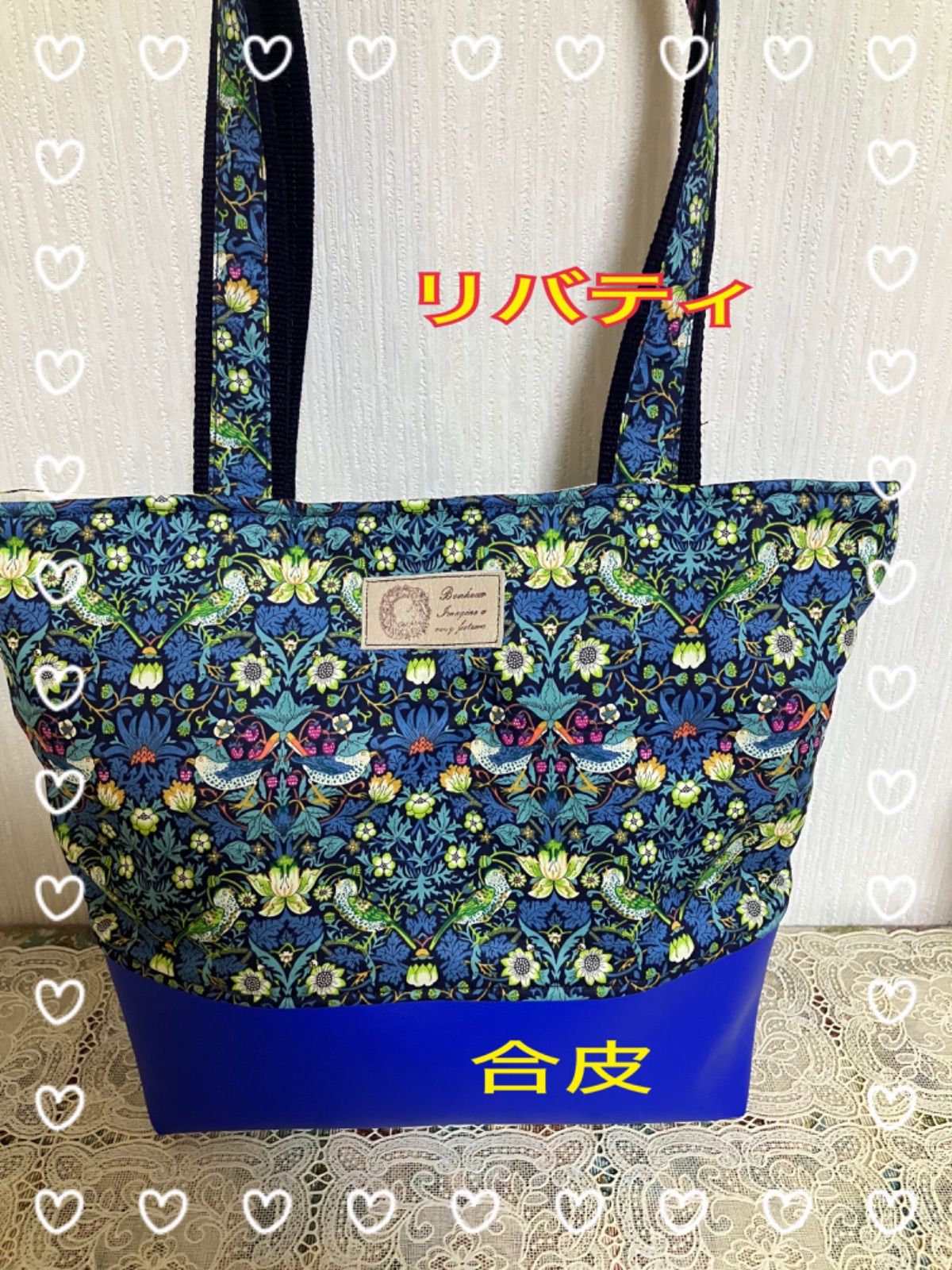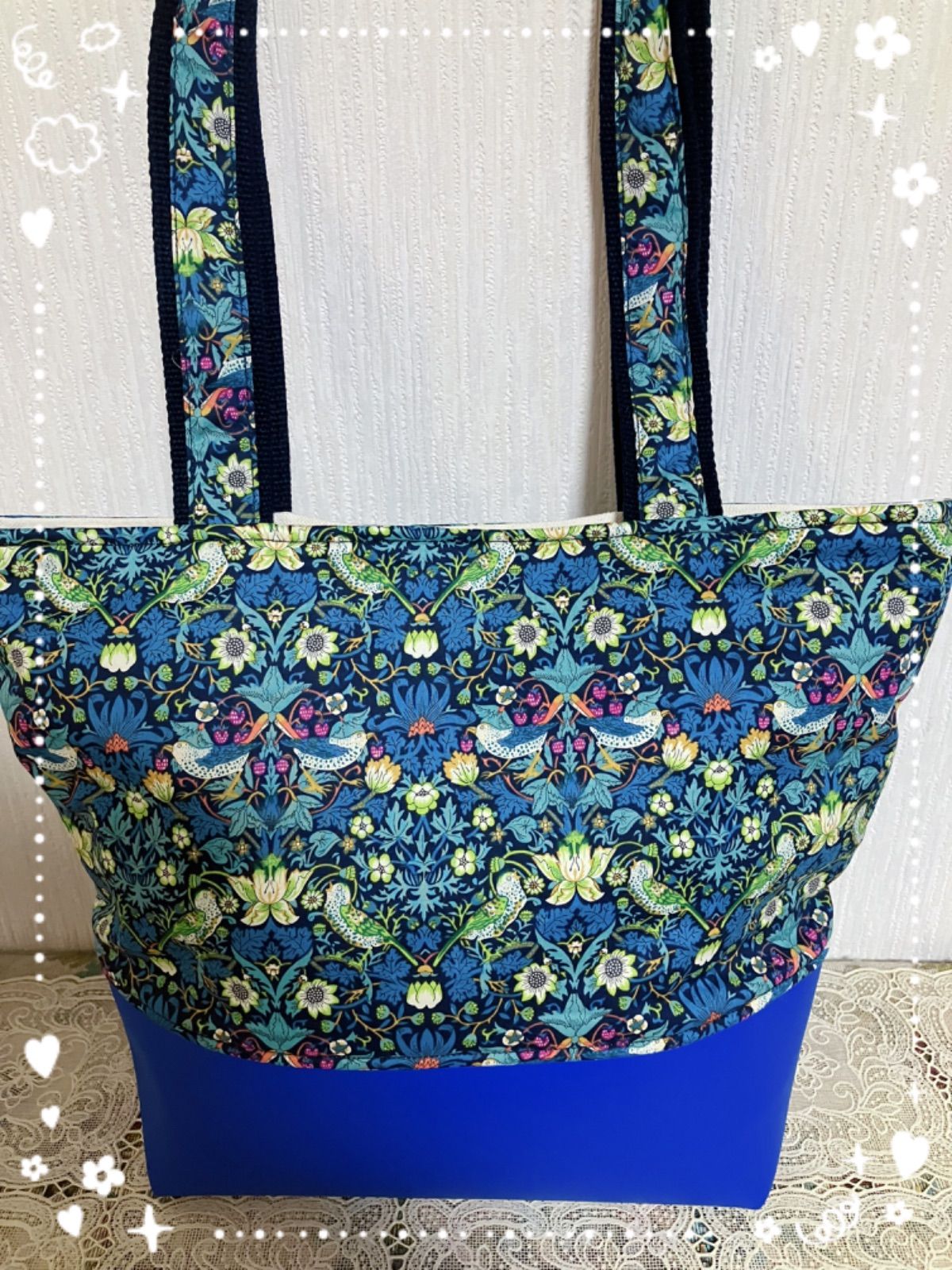 こちらは、リバティ タナローン ストロベリーシーフ生地を使って制作したハンドメイドのトートバッグです。