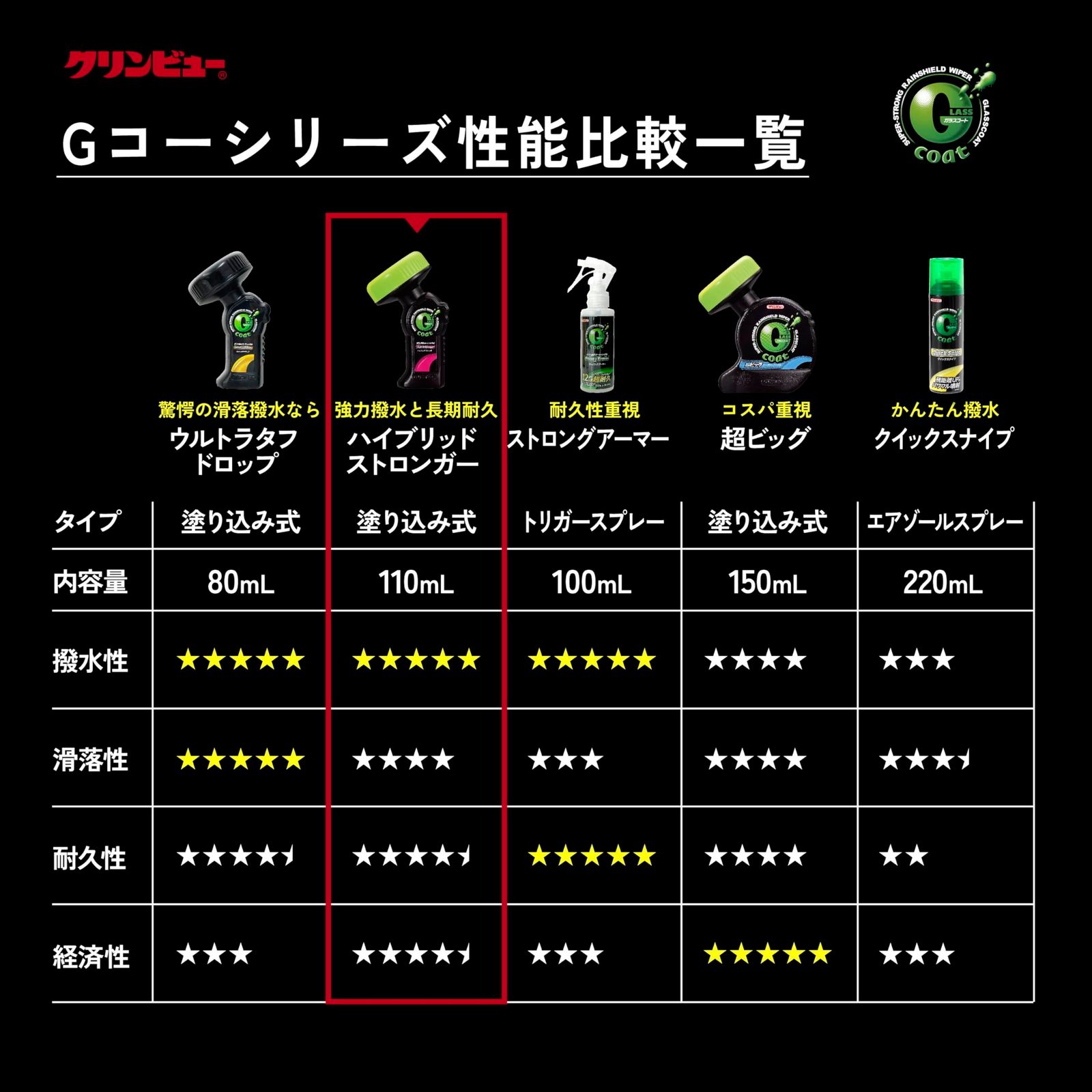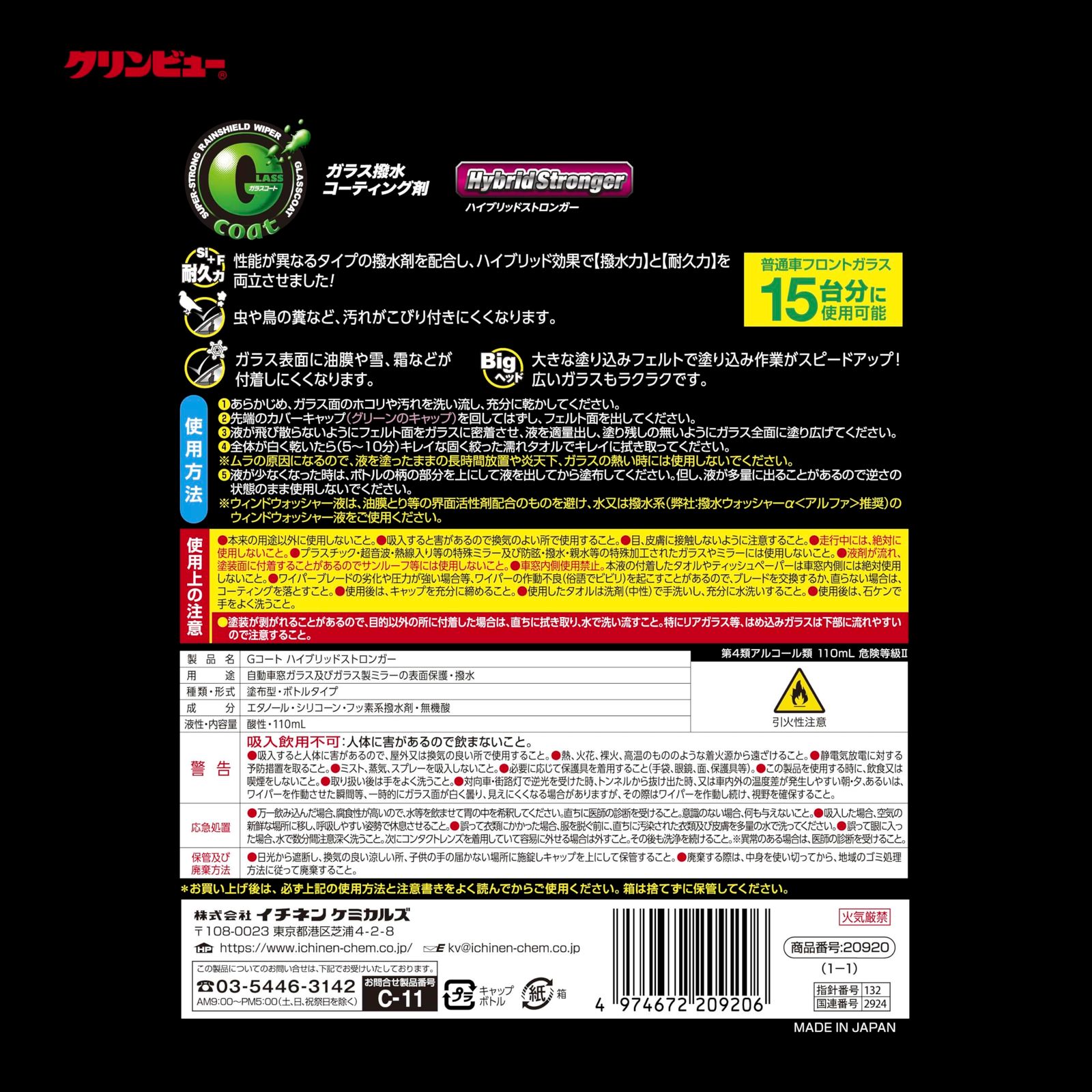 イチネンケミカルズ(Ichinen Chemicals) 車用 ガラス撥水剤 クリンビュー Gコート ハイブリッドストロンガー 110ml 20920 バイオマスエタノール配合