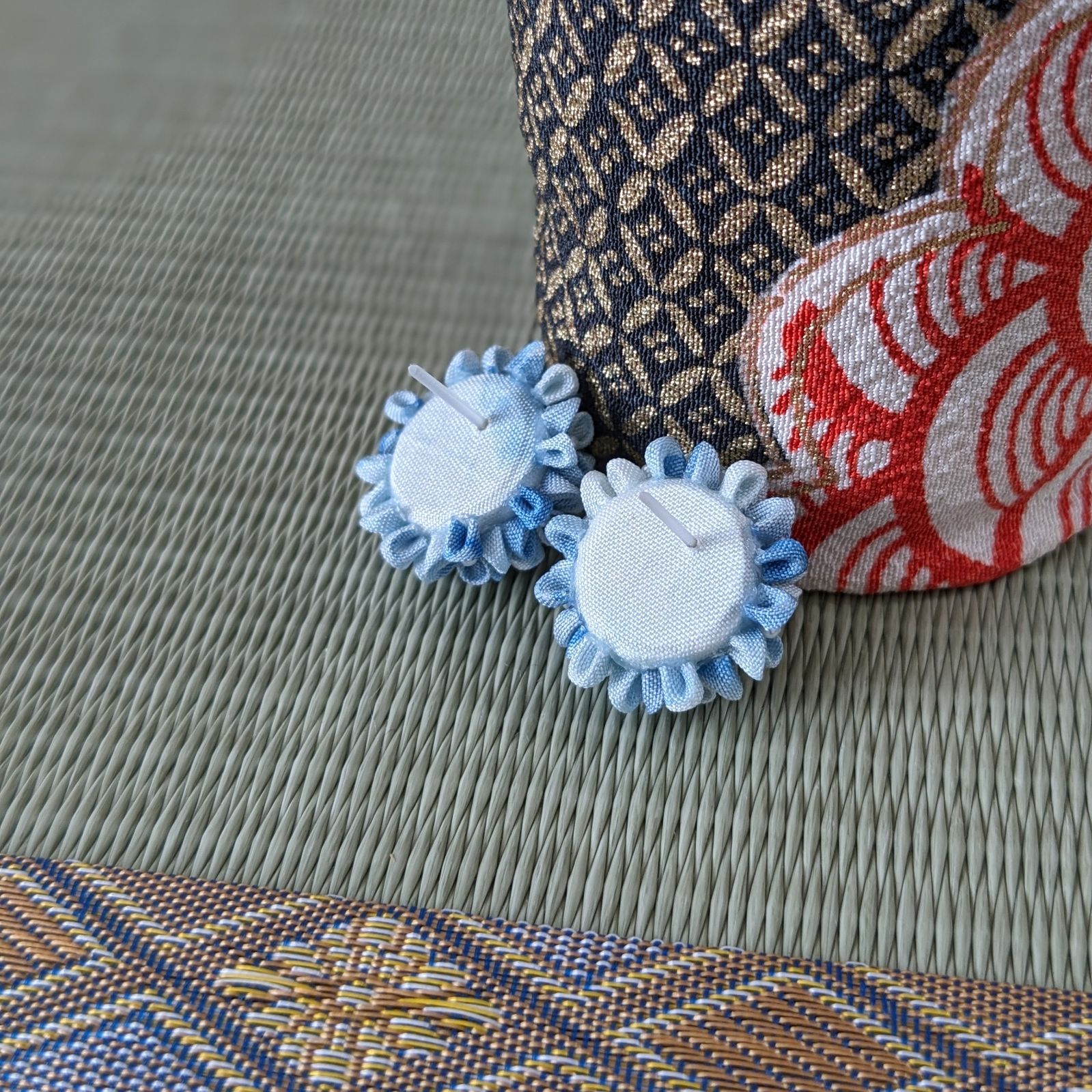 つまみ細工は水に弱くとても繊細です。ヘアスプレー、摩擦、水濡れ等による脱色、汚損、型崩れなどは避けられません。お取り扱いには十分にご注意ください。