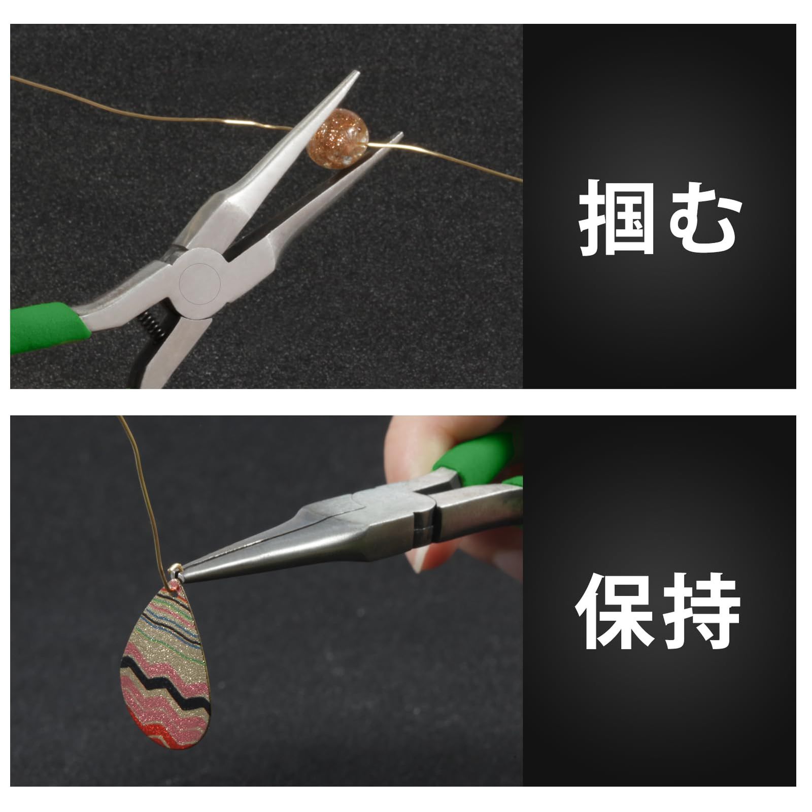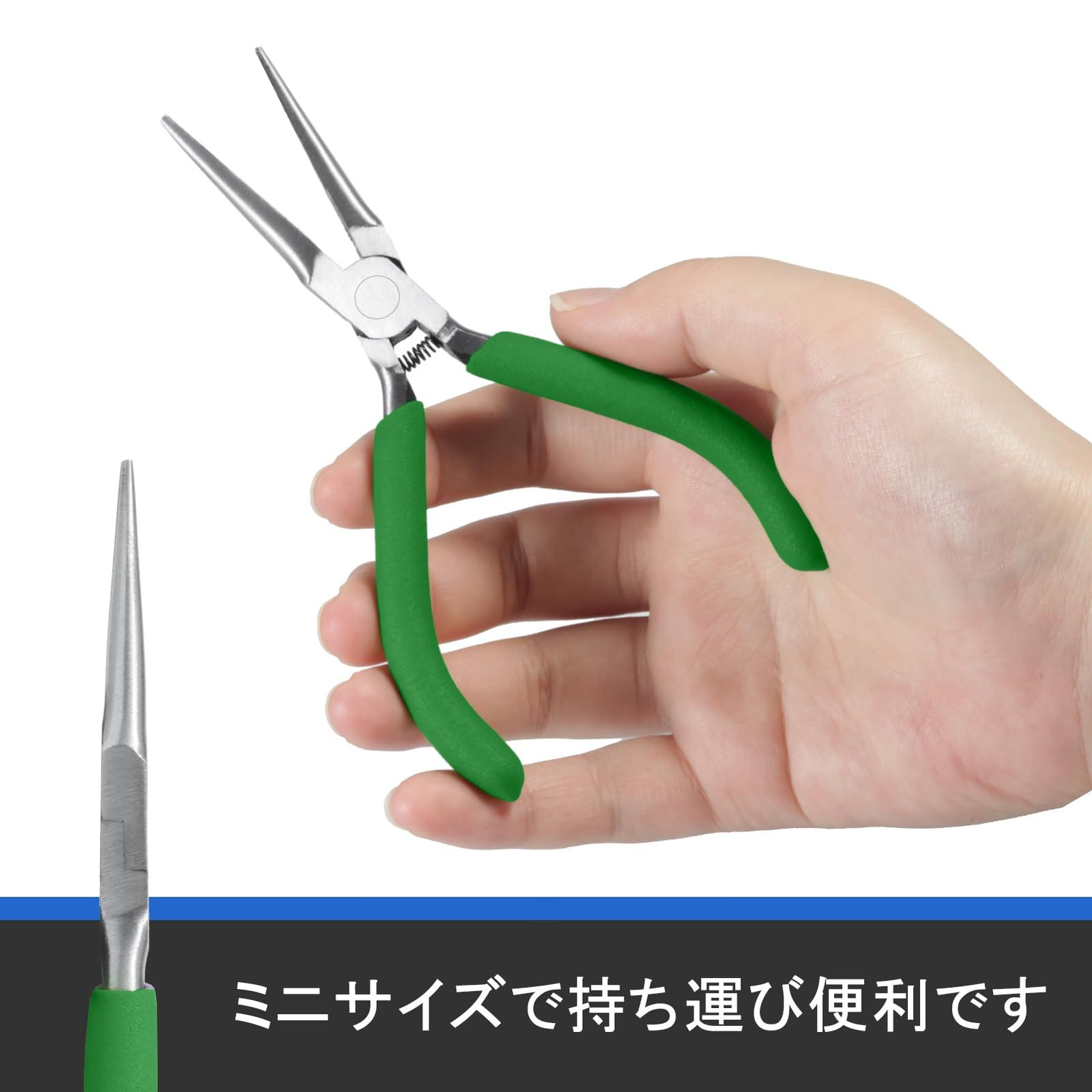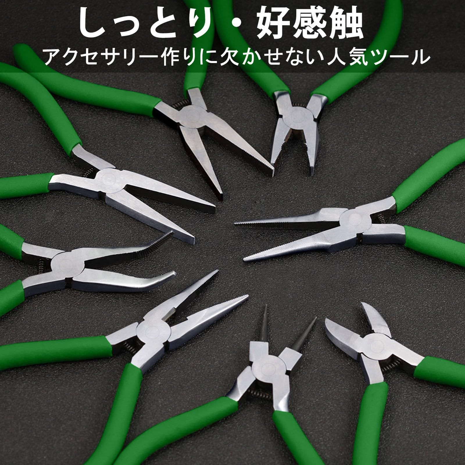 特徴:超細身の先端は従来のラジオペンチでは難作業と思われていた狭い箇所作業に便利です。溝が付いてないので対象物にも傷つけにくい。オリジナルのアクセサリー作りを楽しんでください♪