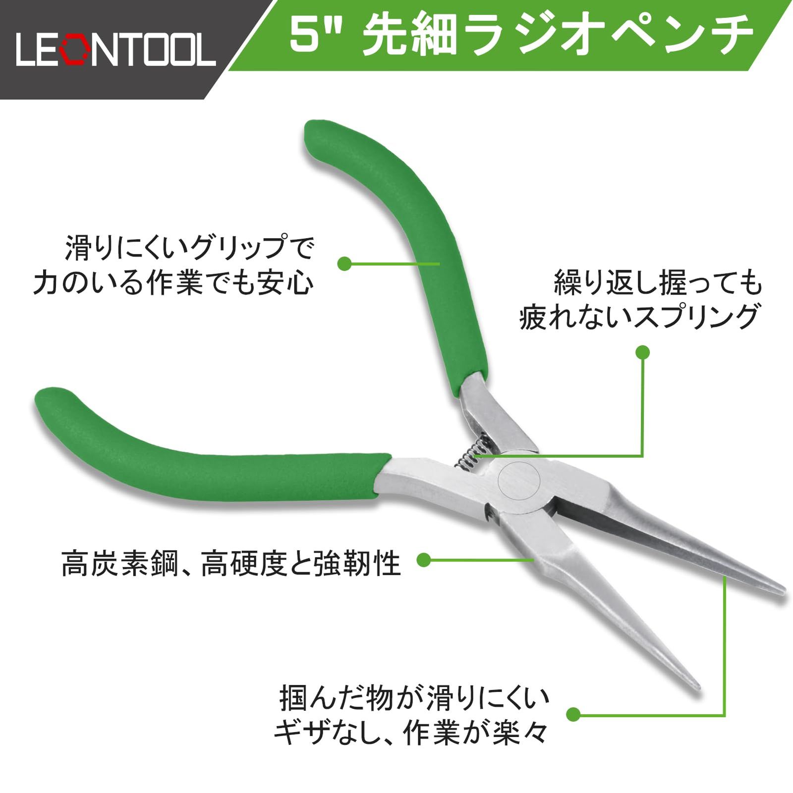 LEONTOOL 先細ラジオペンチ ミニリードペンチ 先細ペンチ ラジオペンチ ギザなし 対象物を傷つけにくい 127mm 小型 軽量 ミニペンチ ヤットコ 精密作業 アクセサリー用 ジュエリー製作 手作り 手芸用品 DIY プロ 工具 女性サイズ 細かい作業に最適 初心者向け
