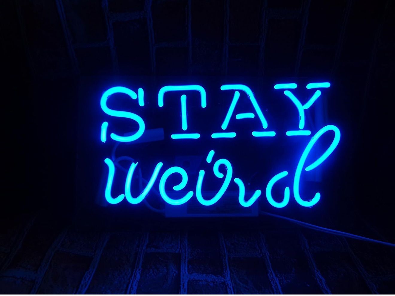 遊び心たっぷりの英文字「STAY weird」をデザインしたブルーのネオンサインです。スタイリッシュで個性的なフォントが特徴で、お部屋やお店の空間を一気におしゃれに演出してくれます。自己表現やユニークな世界観を大切にする方におすすめの一品です。