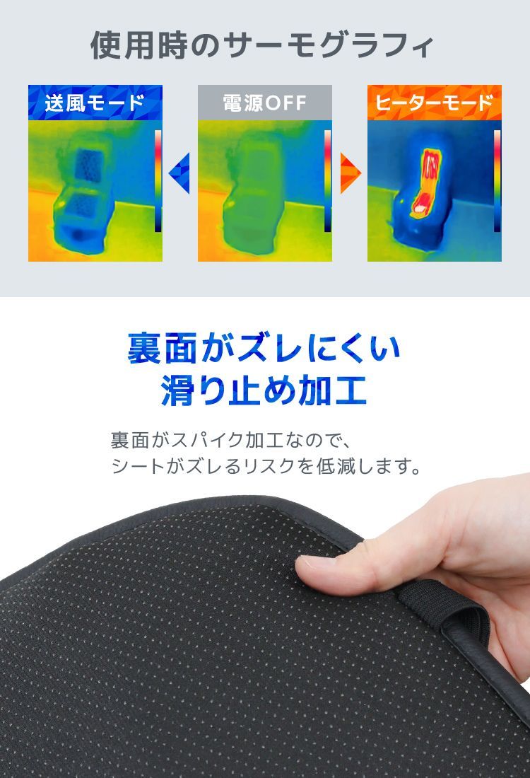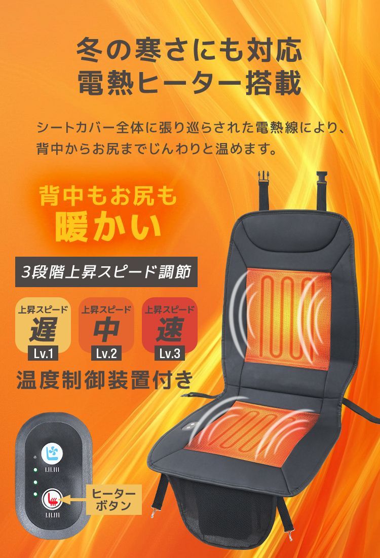 シートカバー全体に張り巡らされた電熱線により、座面から腰面までじんわりと温めます。