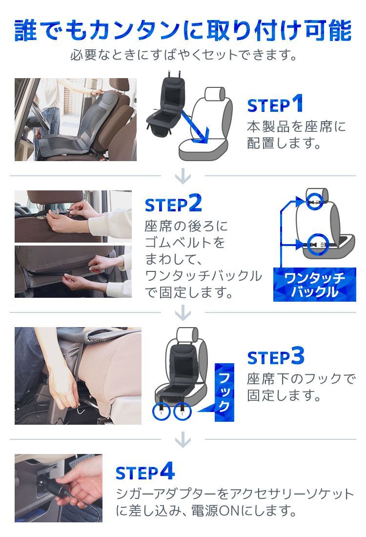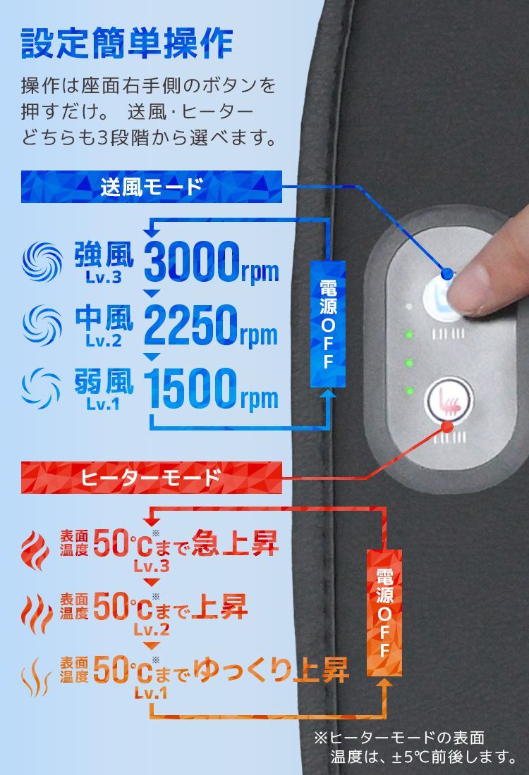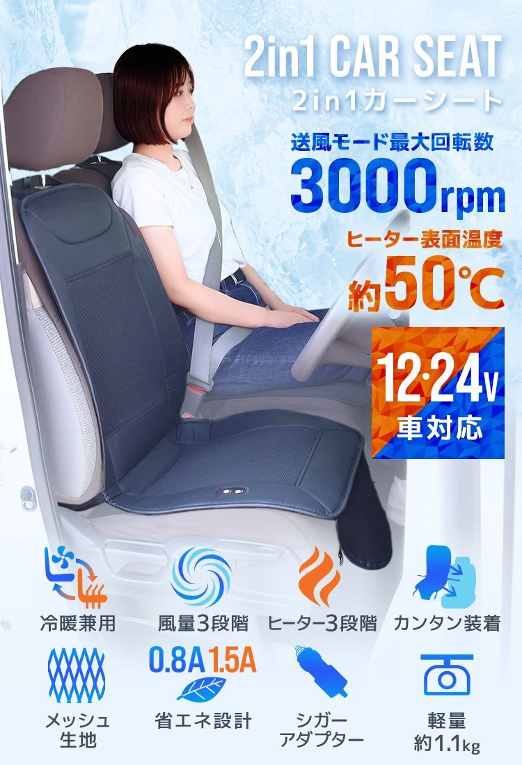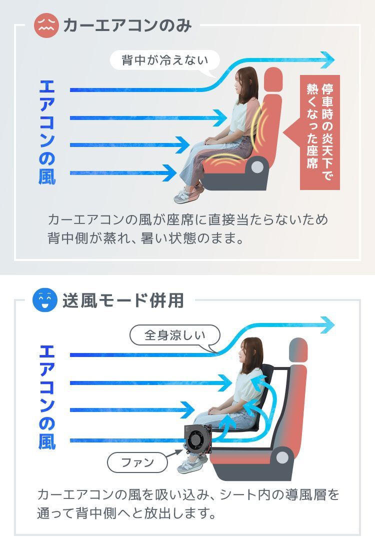 カーエアコンの風を吸い込み、背面と座面から涼しい風を届けます。