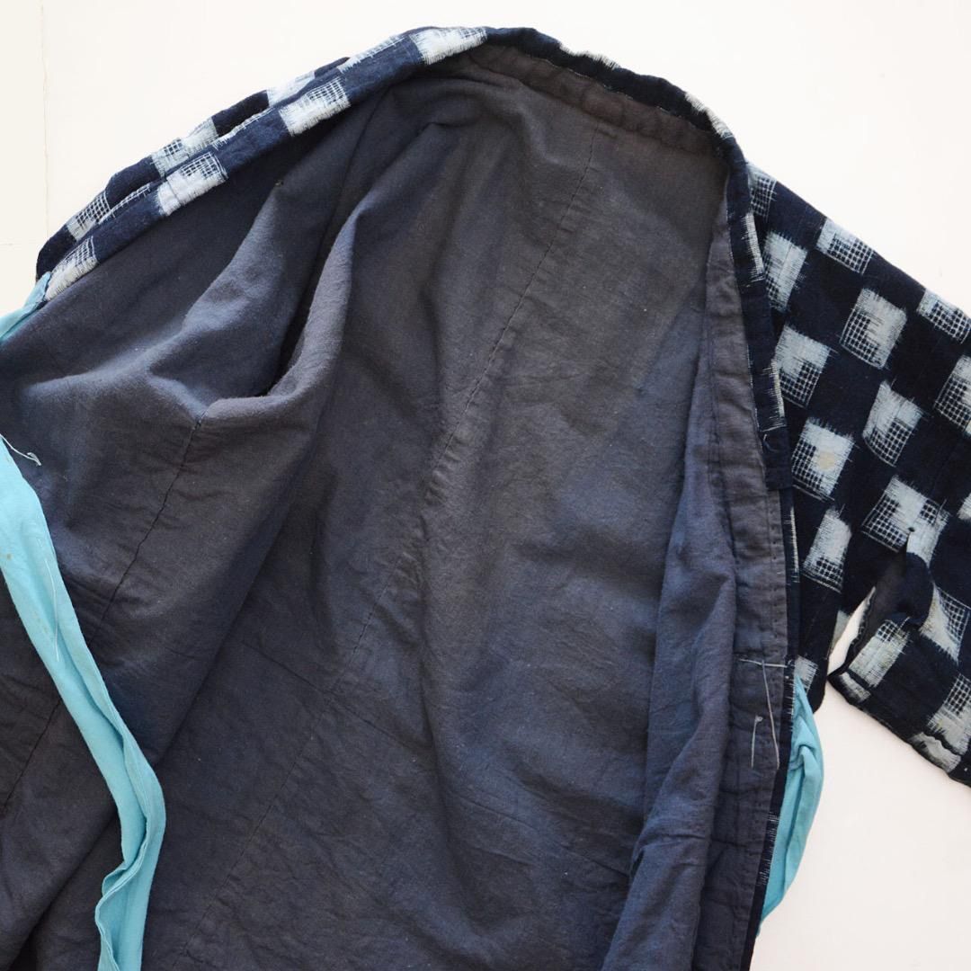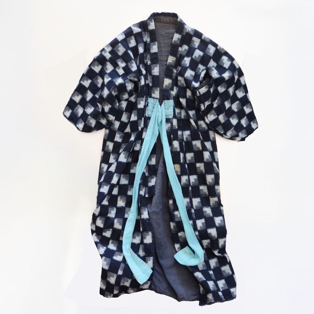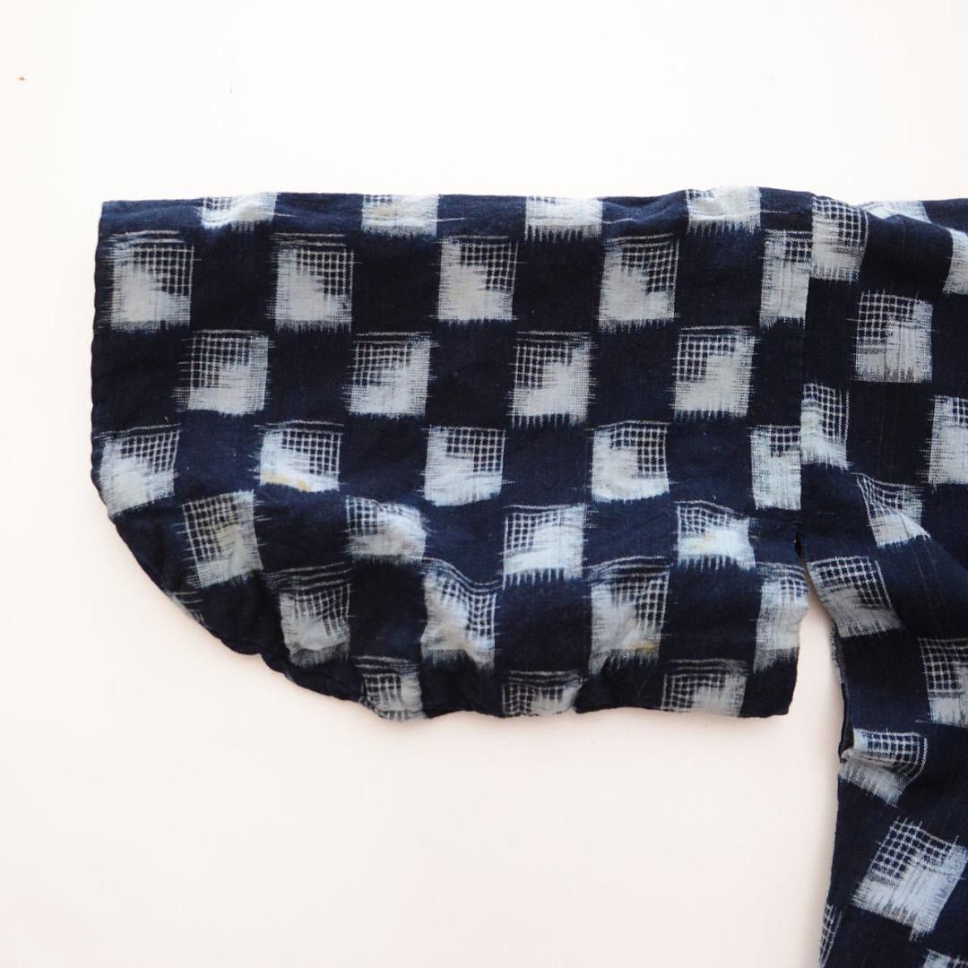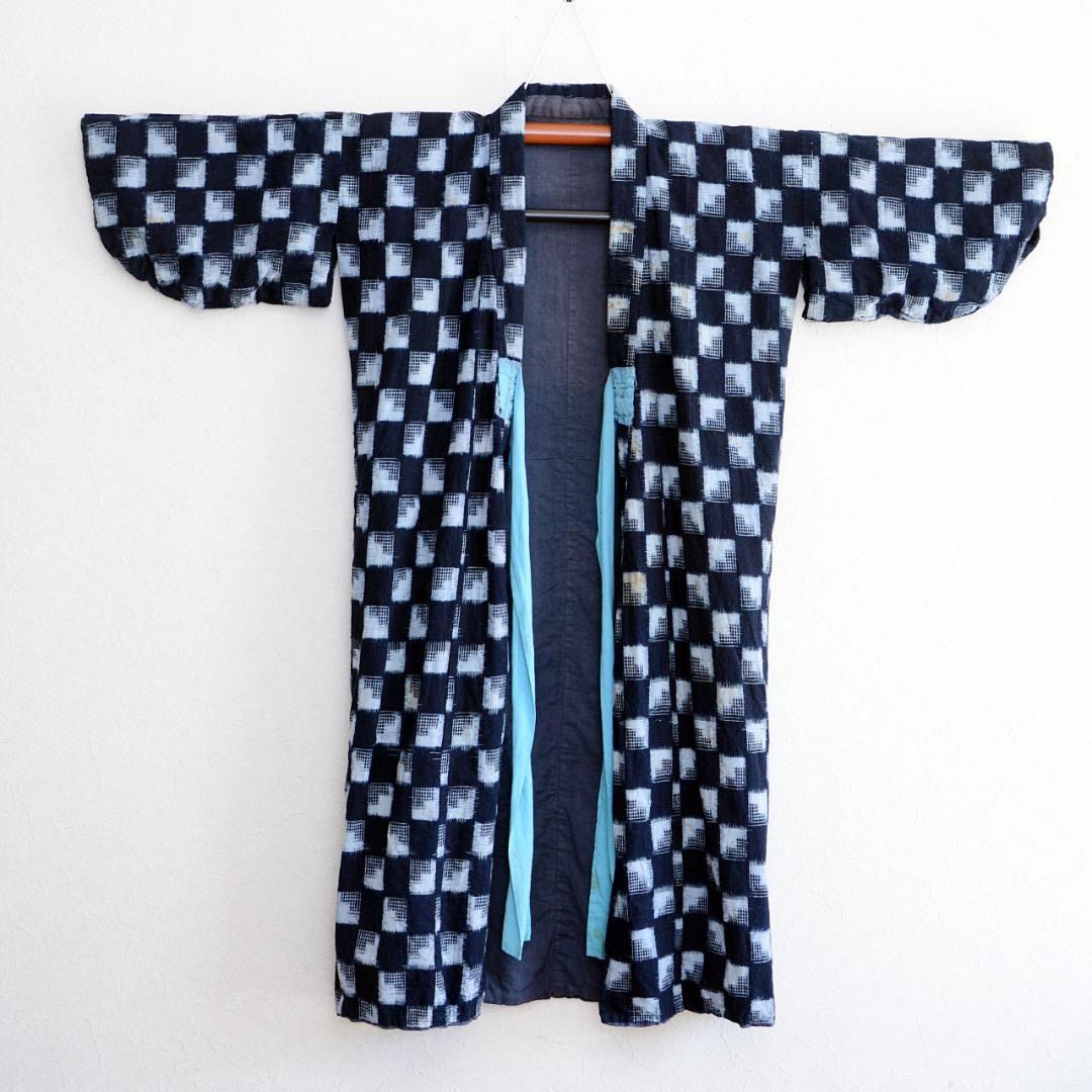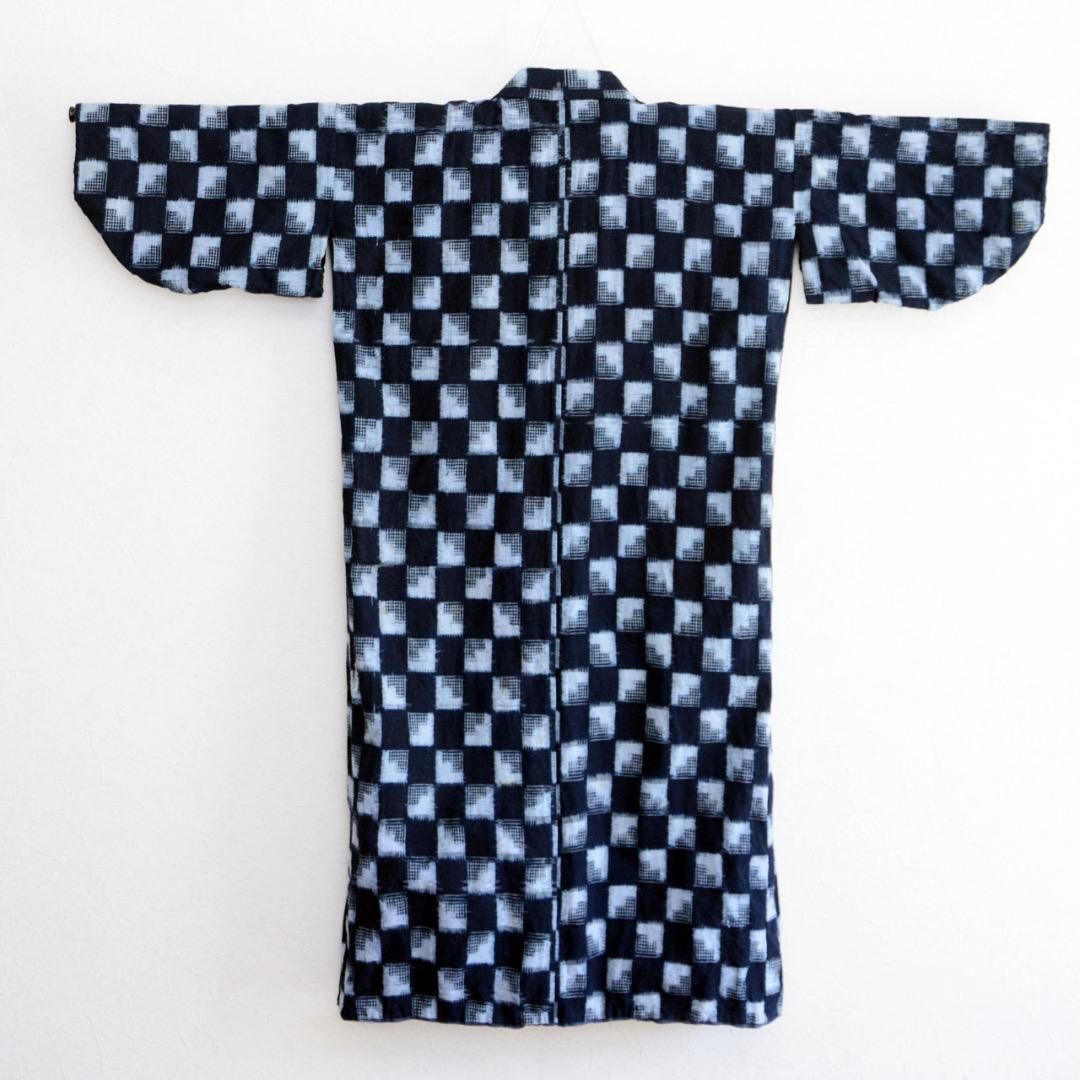 昭和初期〜中期に仕立てられた藍染絣の木綿着物です。