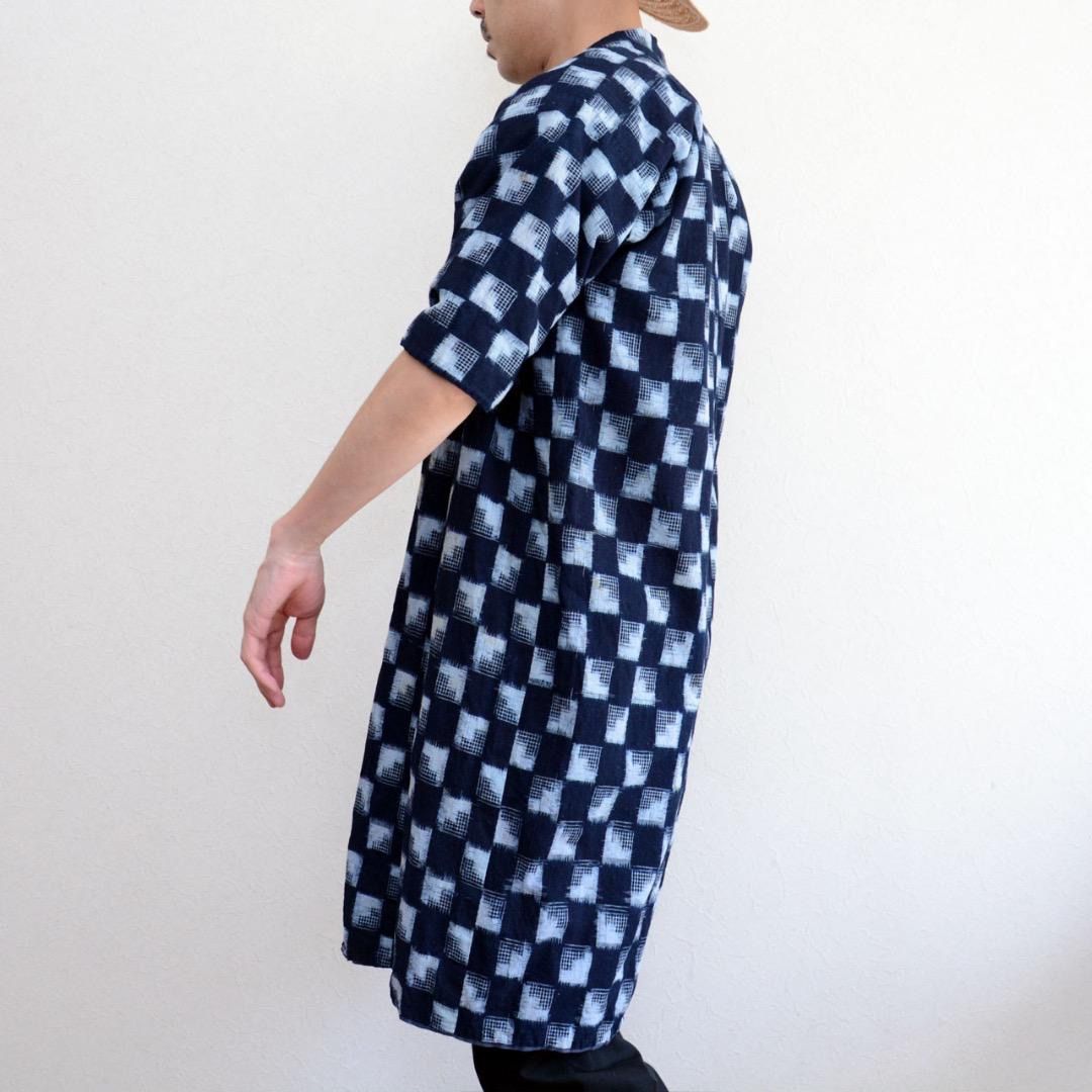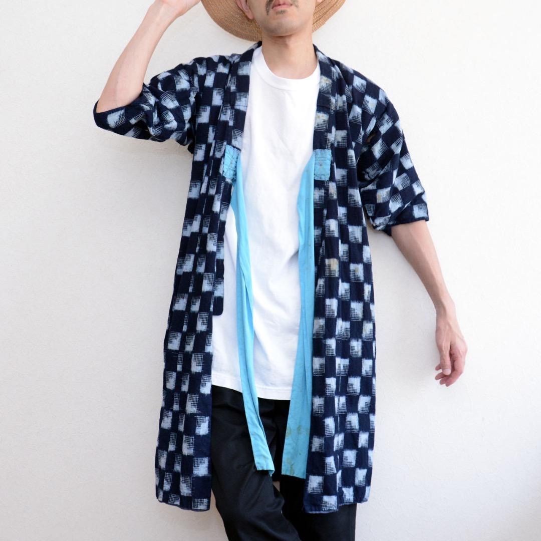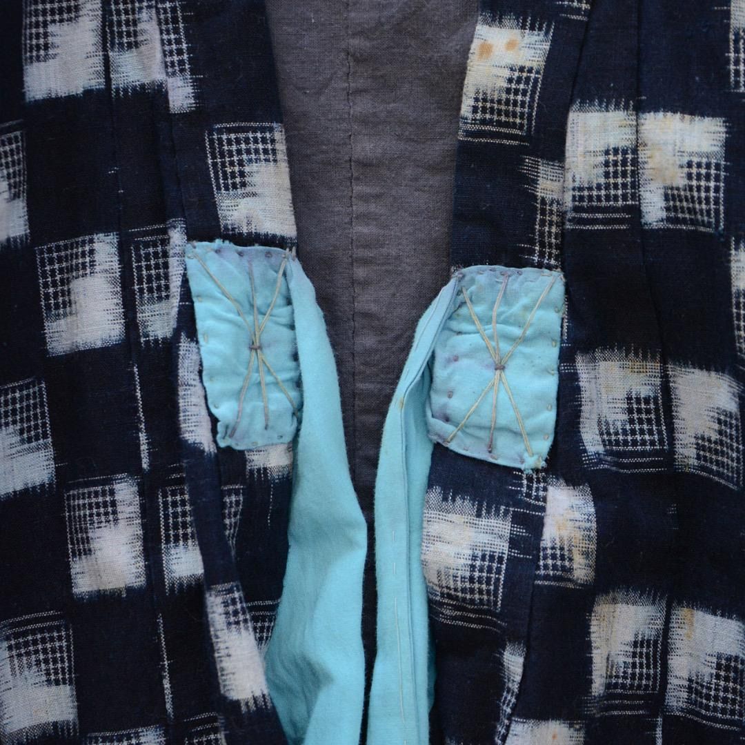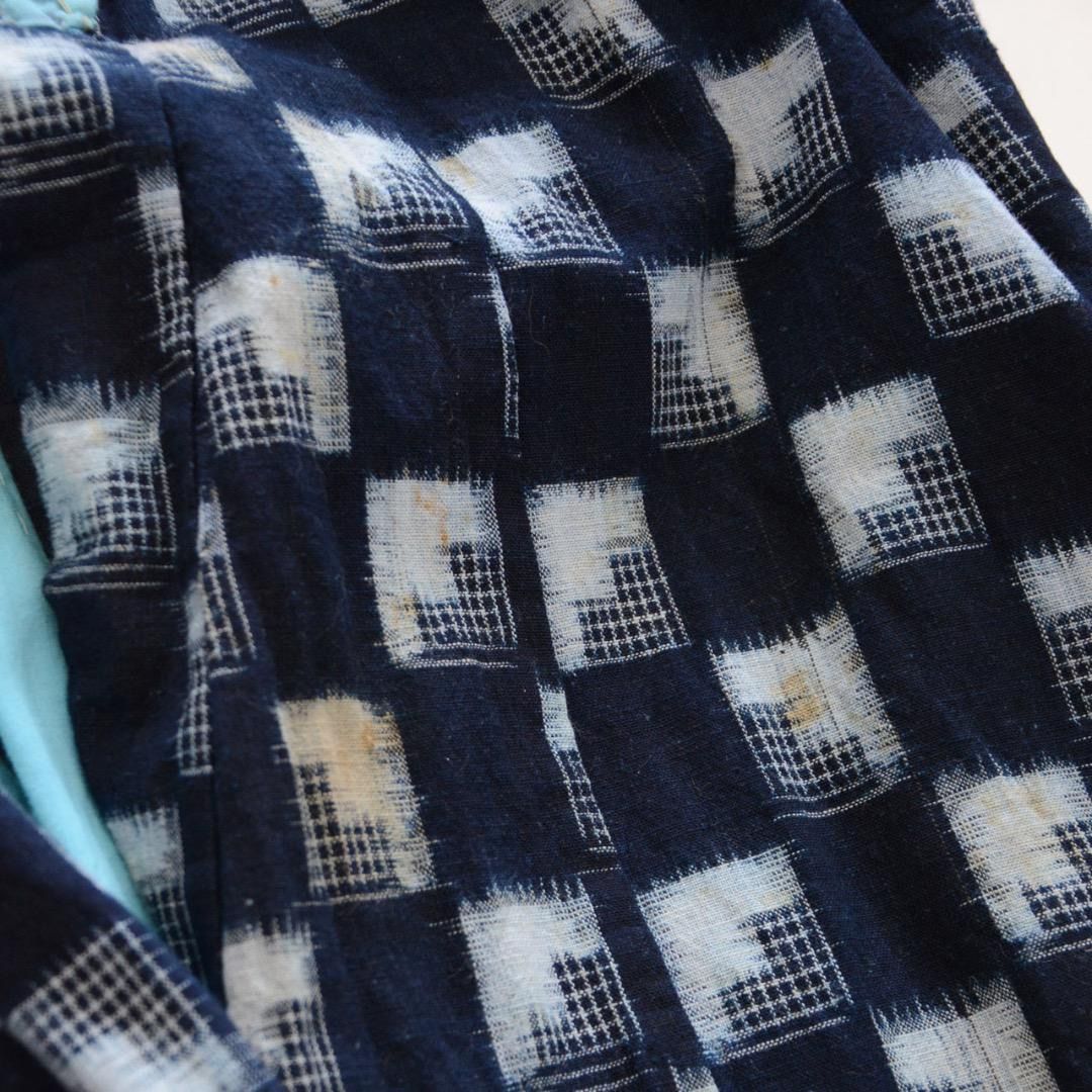 落ち着いた藍色と独特の絣柄は、昔ながらの染織技術の美しさを感じさせ、海外でも高く評価される日本のヴィンテージファブリックならではの魅力を持っています。