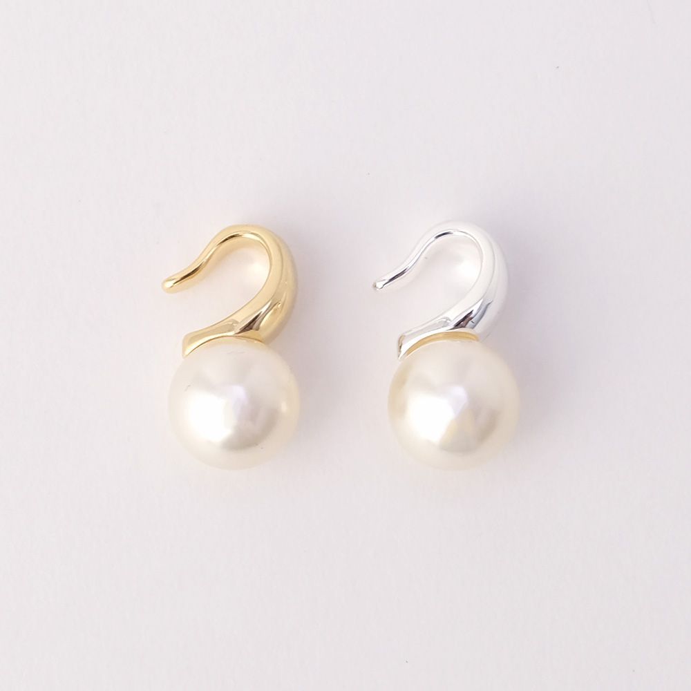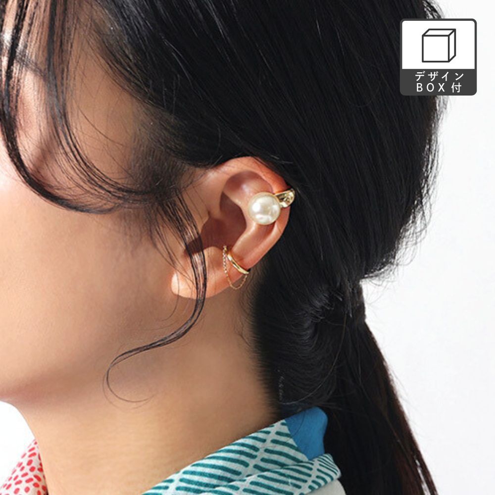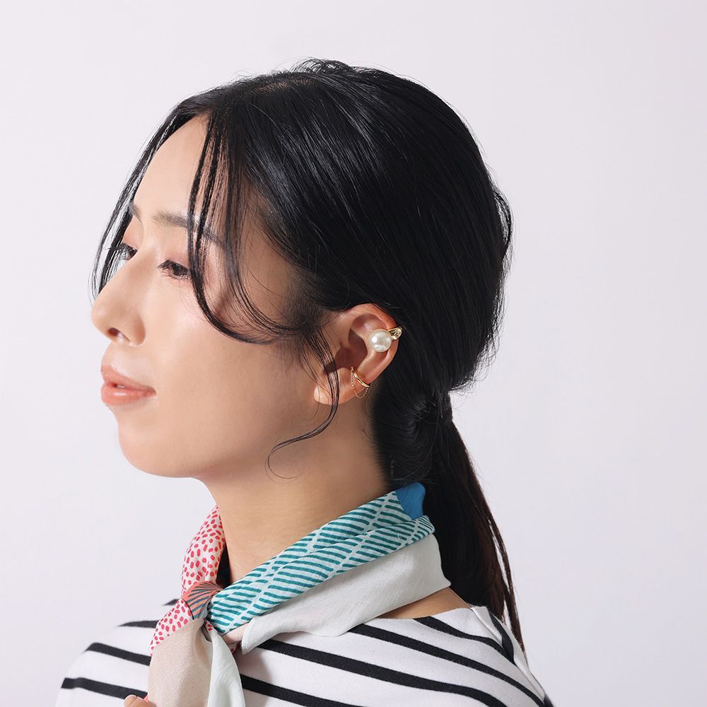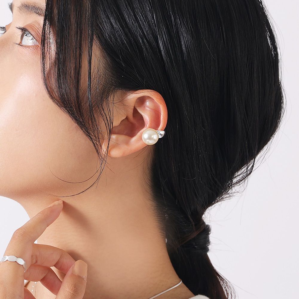 大きなパールが印象的なイヤーカフです。シンプルながらも存在感のあるパールが、女性らしさを引き立ててくれるデザイン。ゴールド、シルバーにも光沢を持たせているので大人っぽい雰囲気をさりげなく演出します。普段使いのカジュアルシーンから、よそいきのお出かけシーン、パーティーシーンまで幅広く対応できる一品です。